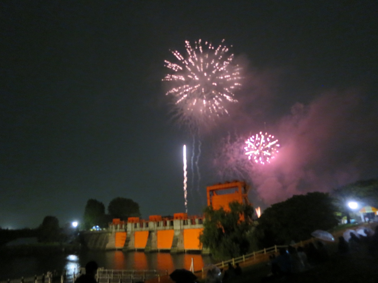 10月という肌寒い季節に行われる花火大会で、7777発というこじんまりしたものですが、その代わりに行きやすく帰りやすいのがよいです。駅前で1000円の有料チケットを買うと場所は簡単に確保でき、帰りもほとんど混まず、並ばずに駅にたどりつけました。花火の時間は50分弱ですが、寒いし、ちょうどよかったです。