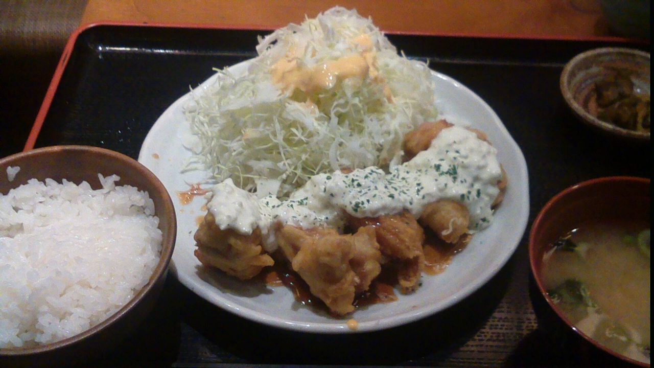赤坂の一ツ木通りにあり、赤坂見附駅からは3分くらいです。ランチが安くて(おまけにご飯の大盛も追加料金なし)おかずもボリュームがあります。チキン南蛮ランチ(690円)を頼みましたが、チキンがたっぷりあるだけでなく、付け合わせの野菜(きゃべつ)も山盛りでした。