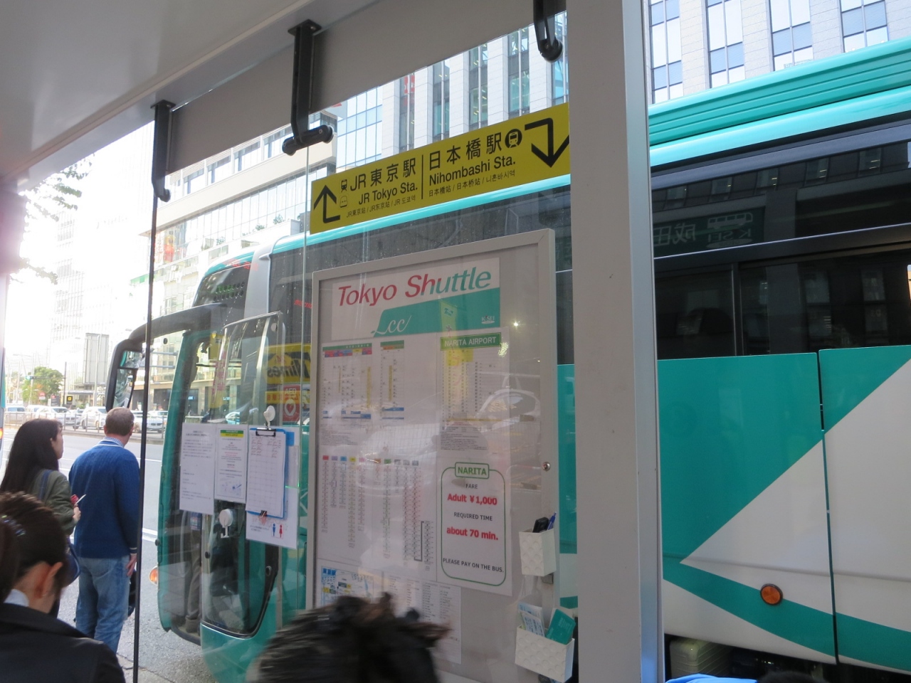 東京駅の八重洲口から5、6分のところにバス停があります。事前に切符を用意しなかったのですが、スイカで乗ることができました。事前に買うと900円らしいですが、当日料金でも1000円なので充分だと思います。それから、バスに乗ってひと眠りするともう成田空港でした。