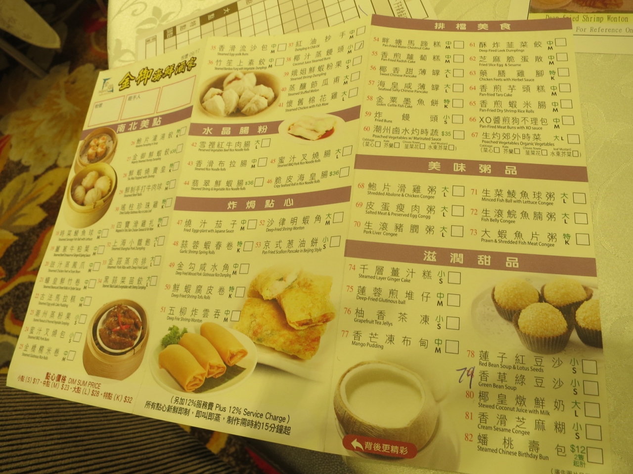 佐敦(ジョーダン)駅からすぐのところにあり、朝7時から飲茶を食べることができます。おまけに朝は粥、ご飯もの、麺類、飲茶お試しセットの特別メニューがあり、とてもお安くすませられます。お店の感じも豪華でよいです。サービスはそれなりですが、まあ、香港だと普通のレベルです。