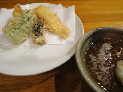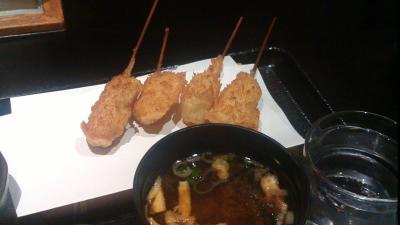 夜は高いお店だそうですが、ランチでは串揚げ8本、ごはん、赤だし、サラダがついて1000円で食べられます。というかこれしかメニューがないので、注文を取られることなくご飯などが並べられ、次々に串揚げが運ばれてきます。正直、何が揚げられているのか食べないとわからないこともあるのですが、合理的なシステムでお安くおいしいものが食べられるのはよいです。