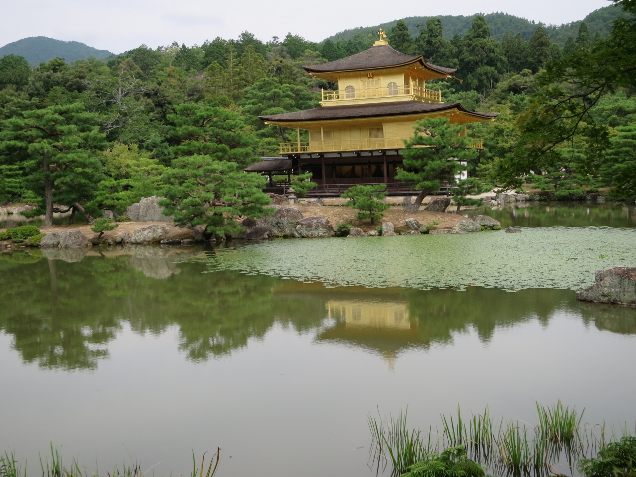 京都の、日本の、そして世界でも指折りの観光スポットだと思います。金箔で覆われた金閣が池に浮かぶ景色は上品でかつ美しいものです。世界各国の人がいっぱいですが、まあ、寺の中の順路をゆっくり歩き、その中で姿を変える金閣を眺めるのは、とても素敵です。