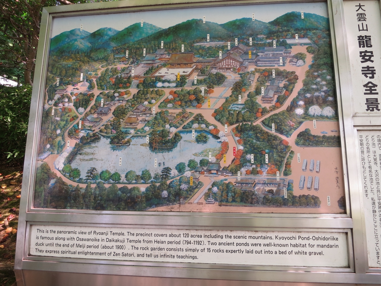北山観光の大事なスポットで、有名な石庭がある龍安寺にあります。有名な石庭がありますが、本堂そのものも風格のある建物で、お寺の歴史関係の資料もたくさんあって見ごたえがなかなかあります。時間をしっかりとって、じっくり私はみましたが、とてもいい経験でした。