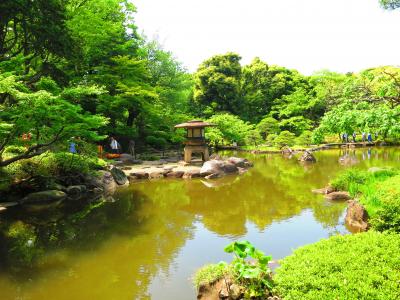 日本庭園も本格的で、水辺を歩いて1週すると、とても落ち着きます。そうそう、茶室もあって、お抹茶をいただけました。- 旅行時期