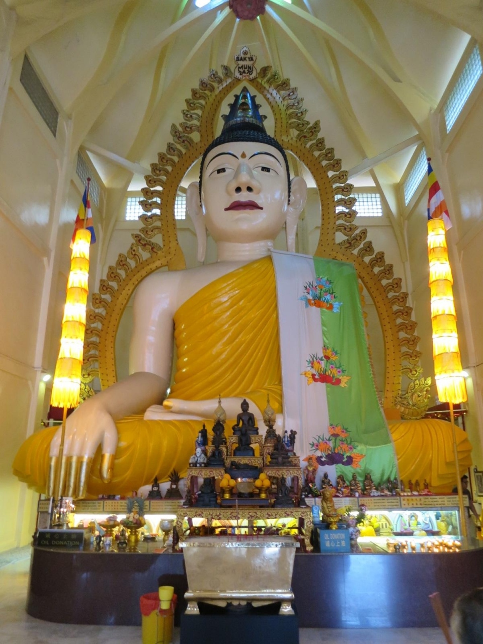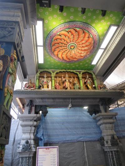 19世紀に南インド出身者によって作られたヒンズー寺院でヴィシュヌ神を祀っているのだそうです。ヒンズー寺院らしく、数限りない神様の像があちこちにかざってあり、その色彩や彫刻を眺めるだけでも飽きません。熱心な信者さんがいるので邪魔しないように気を付けました。