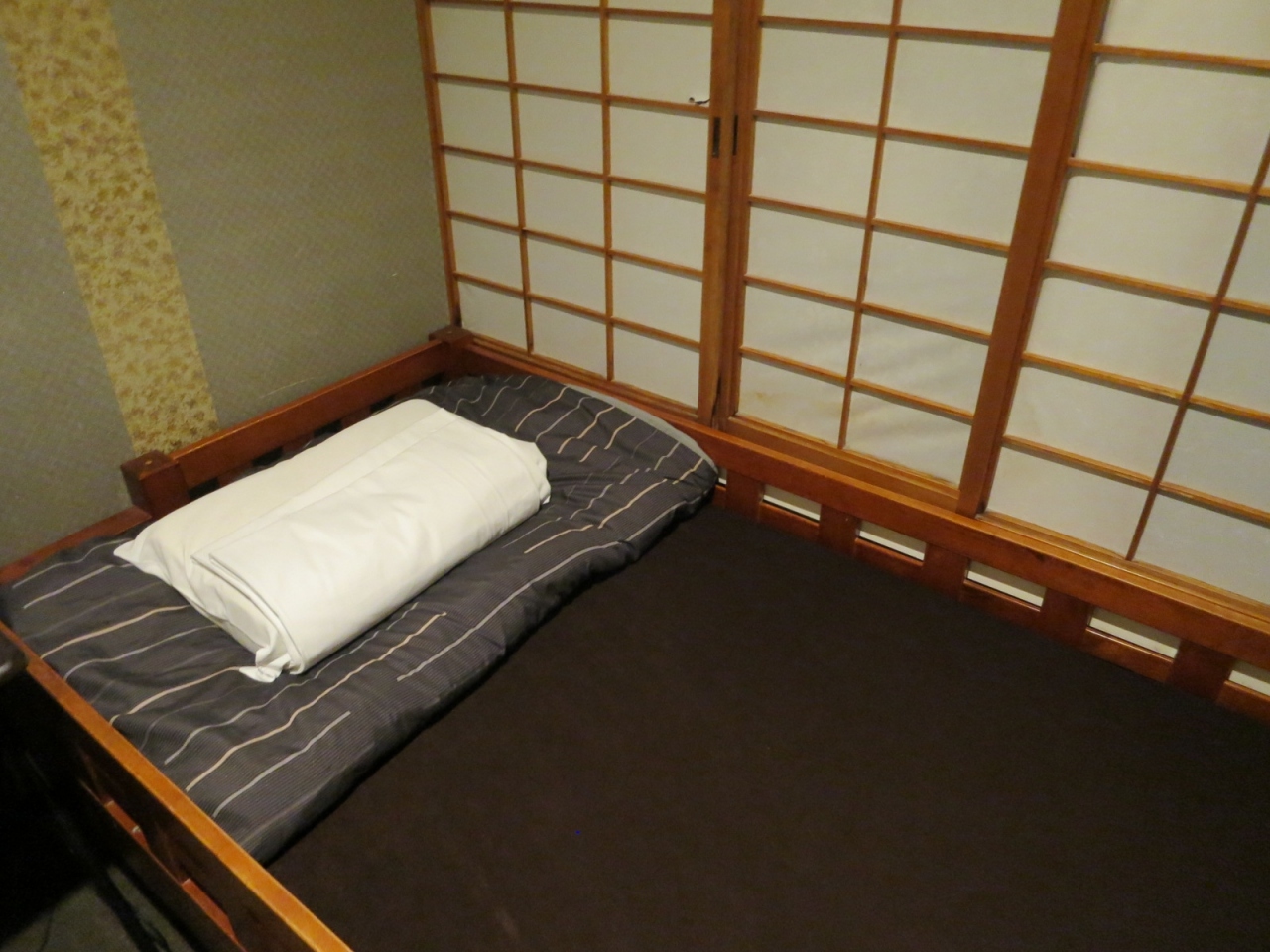 京都の真ん中(四条河原町)で安くて泊れれば、いくら狭くても個室でさえあれば、文句は言いません。写真のように本当に寝るだけですが、とにかく快適に眠れました。空いているときに、うまいこと共用シャワーも使えたし、とりあえず私はOKです。