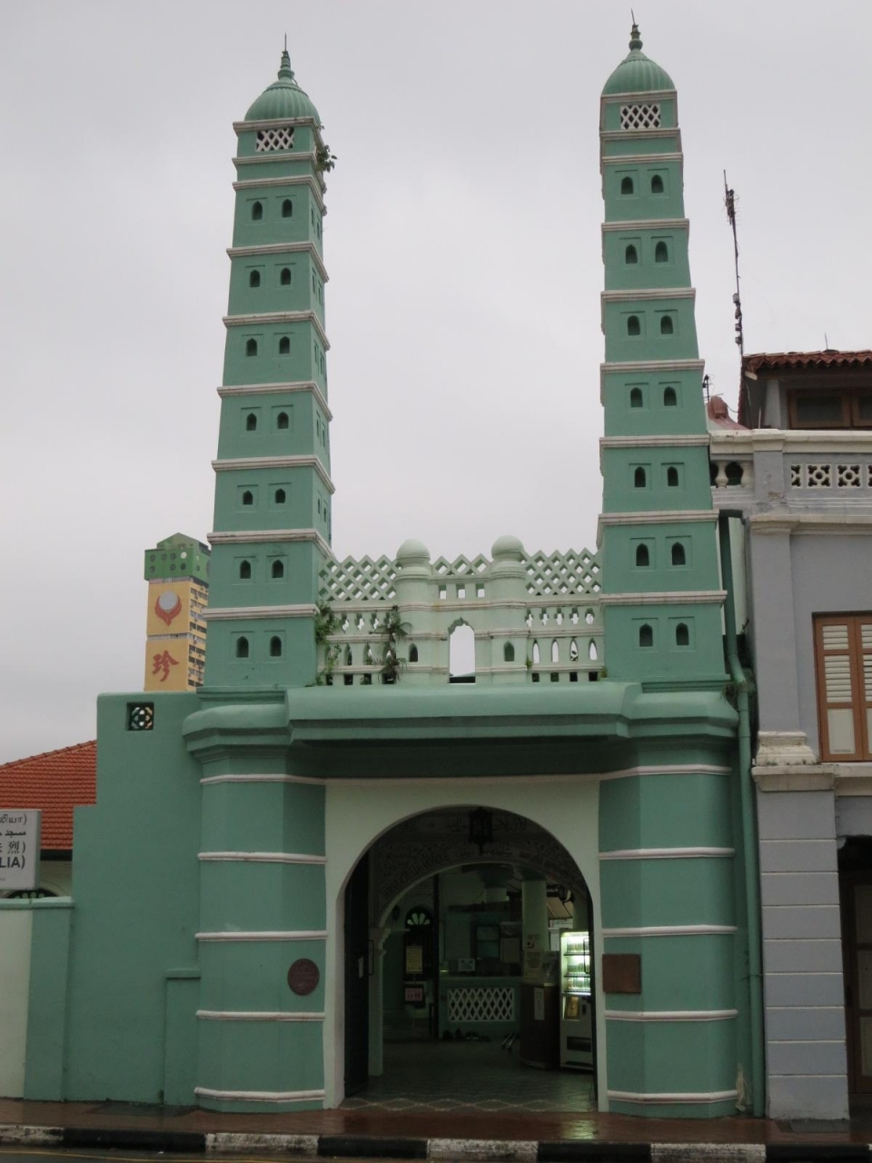 リトルインディア地区にあるモスクで、いかにもモスクらしいすっきりとしたデザインが印象的です。南インドのイスラム建築の影響を受けているのだそうで(そいうえばマイソール王国とか南インドのイスラム王朝がありましたね)、なかなか印象深いです。
