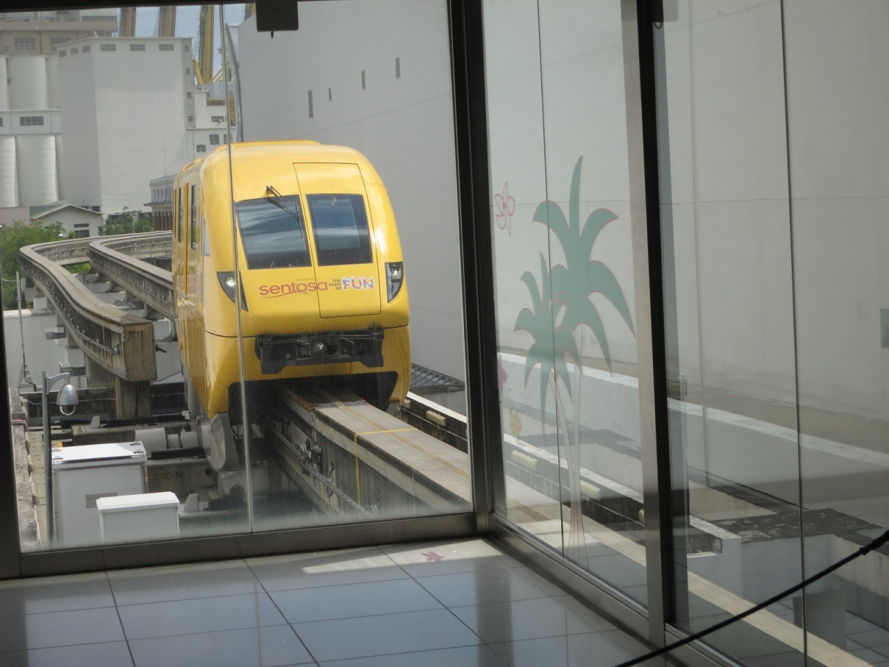 MRTハーバーフロント駅からセントーサ島を結ぶモノレールです。他の手段よりは安くセントーサ島へ渡れるし、景色もとてもいいのですが、難点としては、乗るまでにだいぶ待ったことでした。セントーサ島は人気スポットだから仕方ないですけどね。
