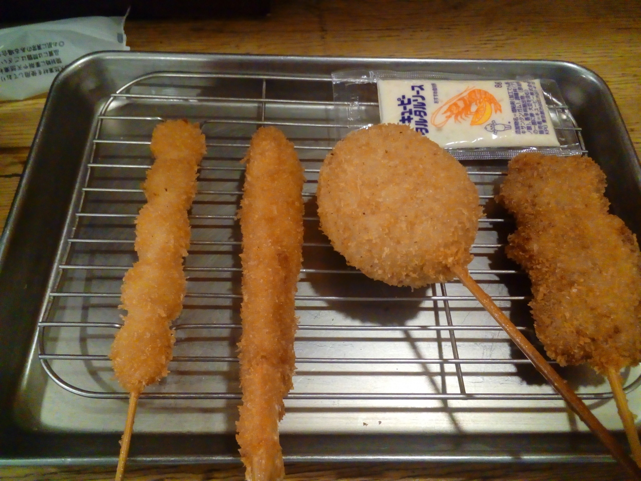 北千住駅から千住大橋方面に5~6分歩いたところにあります。揚げたての串カツをいただきながらホッピーを飲むと、とても幸せな気分になります。(中を追加するともっと幸せですが、飲みすぎないように)私は紅ショウガと牛が好みです。