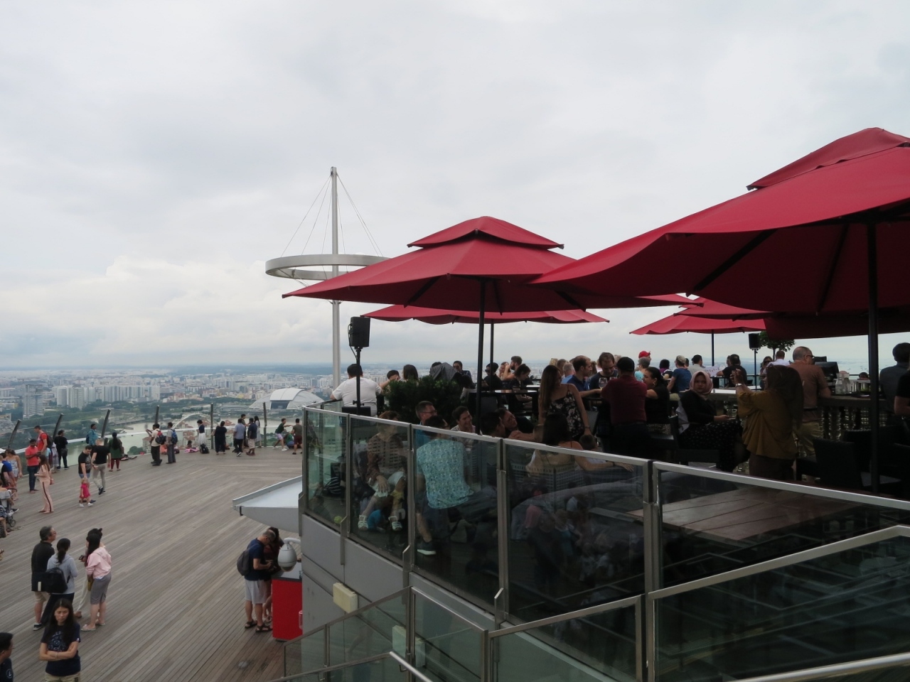 マリーナベイサンズの屋上にある空中庭園&展望台で、宿泊客でなくてもチケットを買えば入れます。結構お高いのですが、ネットでクーポンサイトの割引券を入手できました。シンガポールを一望出来て、「まさに絶景」お勧めです。