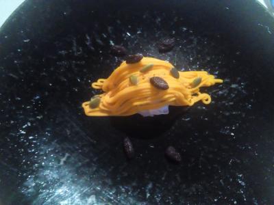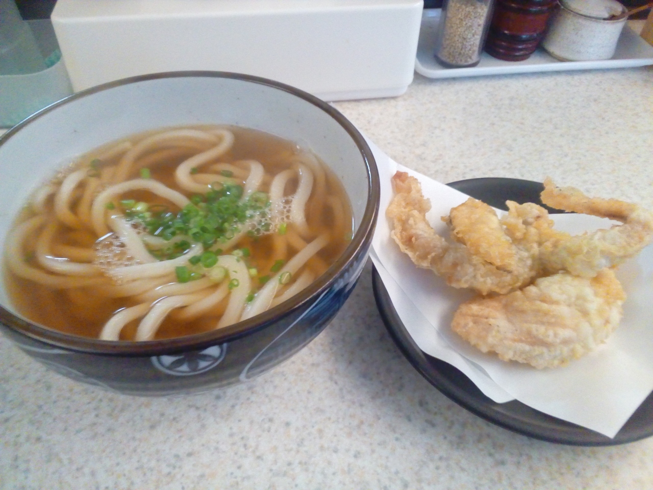 高松駅から歩いて南へ10分ちょっと、中心市街地にあります。兵庫町商店街の入口です。セルフのうどん店で、うどんそのものももちろんおいしいのですが、骨付き鶏もおいしく、高松名物をどちらもいただけて嬉しかったです。それから、デザートのうどんかりんとうもなかなかでした。