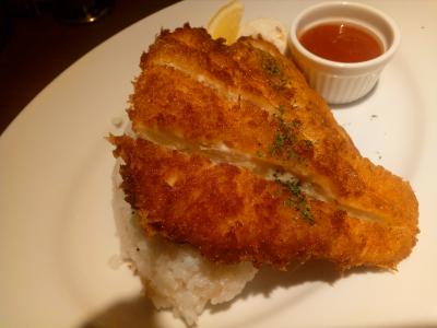 神田駅西口商店街をまっすぐ、歩いて駅から8分くらいです。地下にあるので看板を見逃さないようにしてください。ランチには定食メニューが数種類あり、ドリンクバーとコールスローサラダ食べ放題がついています。ミラノ風チキンカツをいただきましたが、おいしかったです。