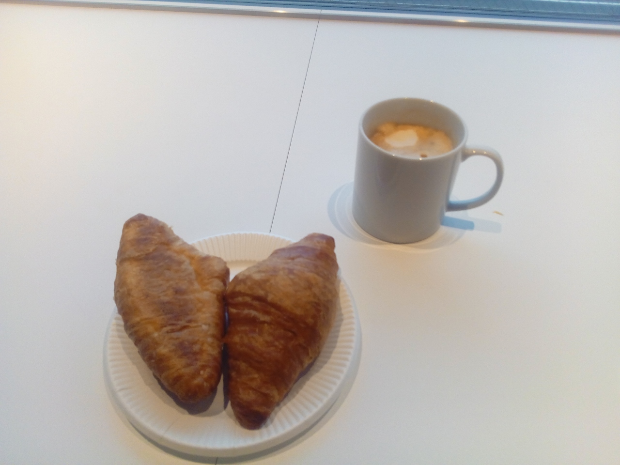 羽田空港の出発ゲートを入った中にありますので、ゆっくりとすることができてとてもありがたいです(手前だと乗り遅れるのが心配でせわしないんですよね)。ゴールドのクレジットカードがあると無料で使え、ソフトドリンクだけでなくクロワッサンがあったので朝食代が浮きました。