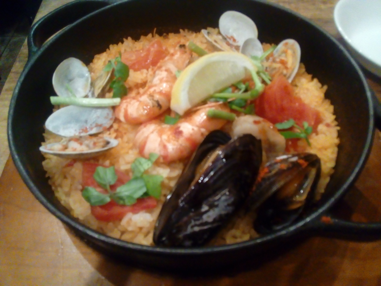赤坂駅と赤坂見附駅の中間くらいのところにあります。ランチは何種類かありましたが、パエージャをいただきました。エビやムール貝などのシーフードがたくさん入っていて、何より鉄鍋に入っているのでほかほかをいただけて満足でした。それからサラダにキッシュが付いているのもポイント高いです。