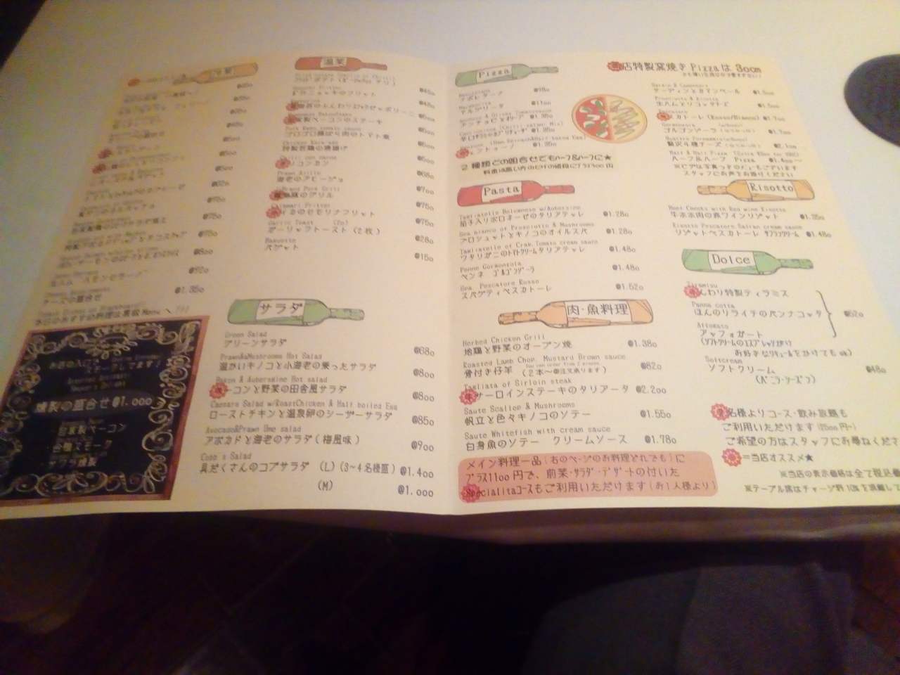 センター街の入り口Forever21ビルの地下にあります。広々とした店内でお洒落なつくりでした。ちょっとしたデートにもよいと思います。ピザが売りだそうで、2種類のピザを半分ずつあわせたハーフ&ハーフというシステムがあり、高いほうのピザの300円増しのお値段でした。ちなみに、サービス料が10%かかります。