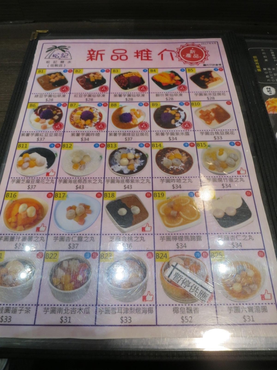 夕食後佐敦の通りをぶらぶら歩いていて、人込みがあったので見つけたのですが、ガイドブックにも乗っている有名店なんですね。数えきれないくらいのデザートがあり、メニューも写真付きのものがあり、おまけにカウンター席があるので、使いやすかったです。お味もよくて、結局2日通いました。