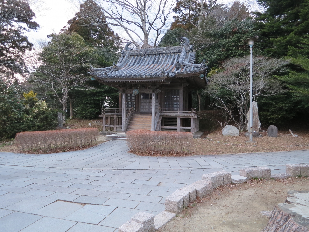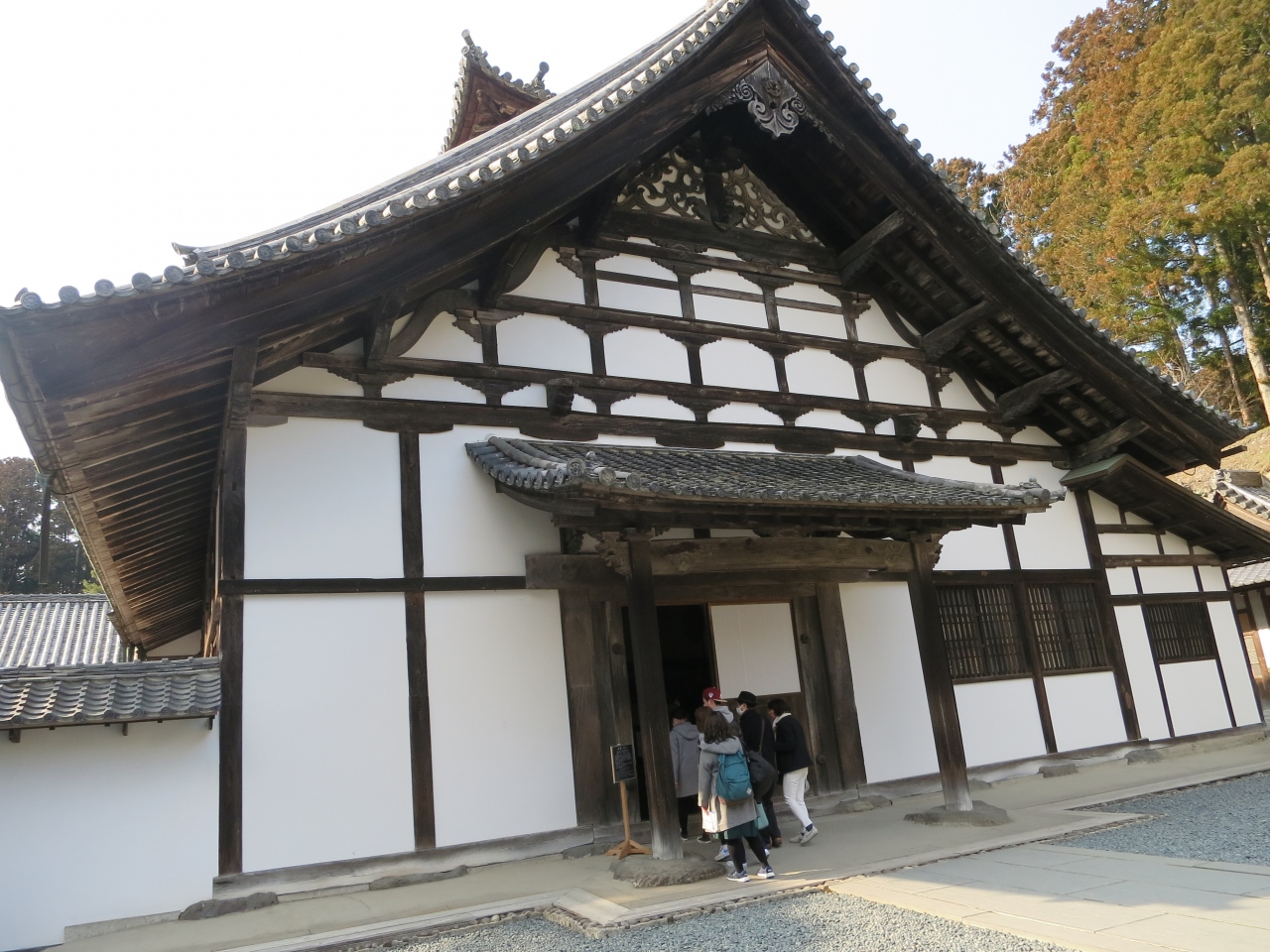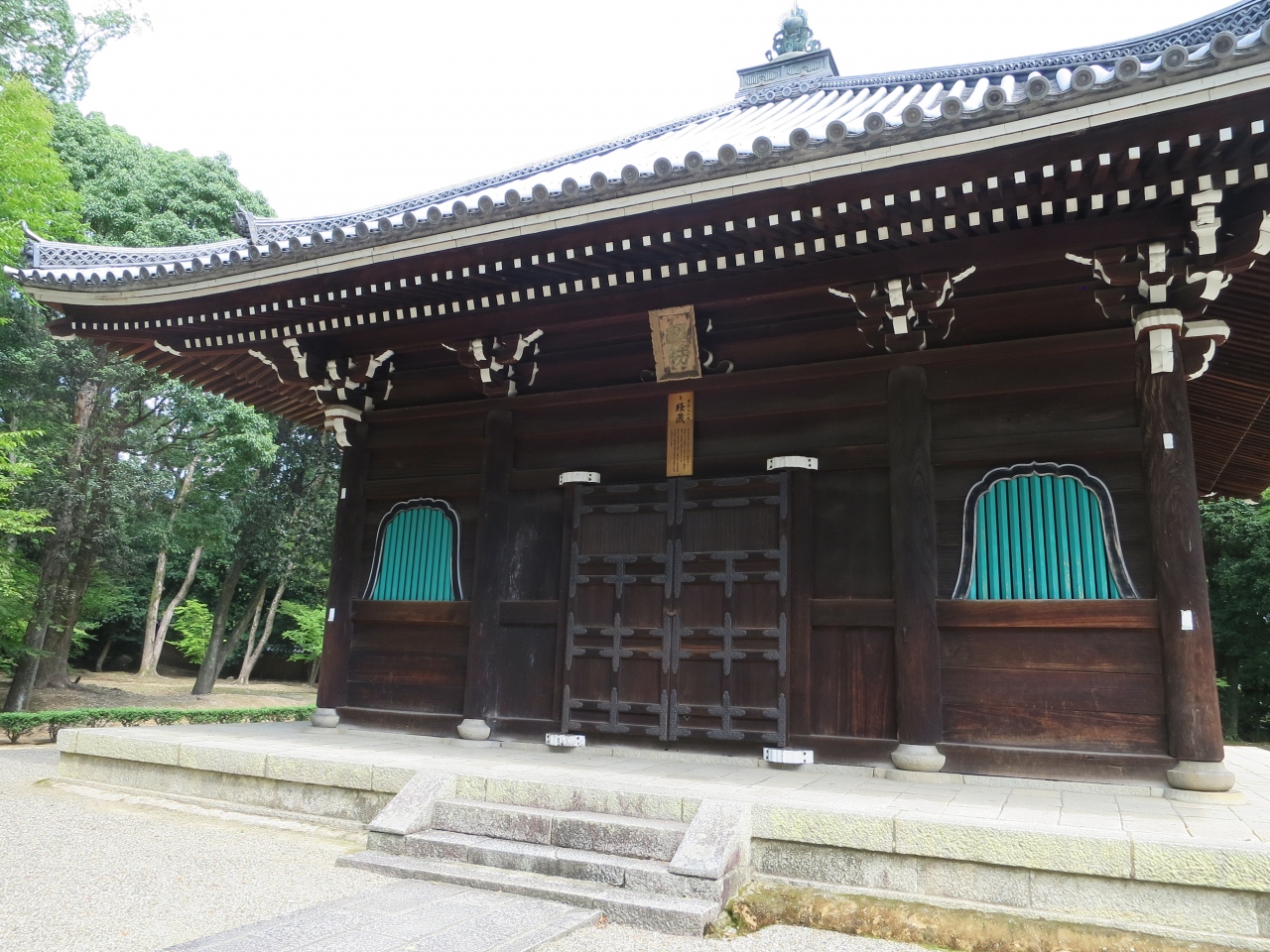 仁和寺御殿の一番奥黒書院の先にあります。階段は結構滑りやすくて気を付けたほうがいいと思います。薬師如来坐像をお祭するために建てられた明治時代の建物で、額の字は、毀誉褒貶盛んな(というか「毀」と「貶」ばかりの)近衛文麿首相首相のものだそうです。