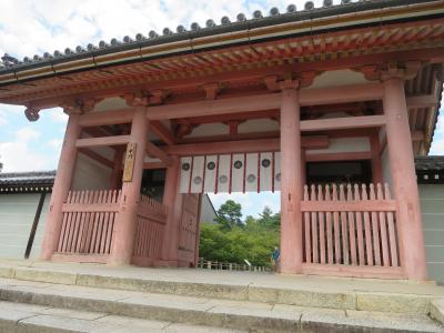 仁和寺の入口二王門を入って少し歩くともう一つ門があります。二王門と比べると大分小さな門ですが、これも重要文化財で、金堂への道に続いています。近頃よく言われるオリジナルの色の話から言うと、このくすんだ紅色はもともと何色だったのかな?とちょっと考えました。
