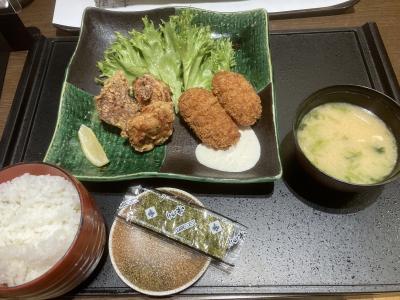 煮魚定食にも心揺らいだ奥様ですが、魚の種類が好みで無かったようで、カキフライは私、から揚げは奥様。