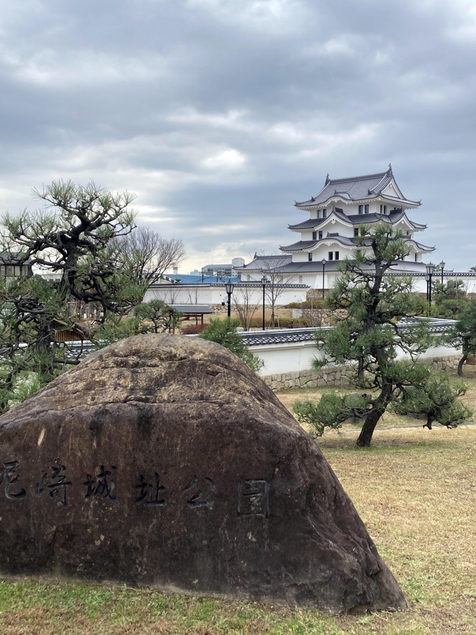 尼崎城を中心にした西の丸跡地を整備した公園で、家電量販店のミドリ電化(現在はエディオン傘下)創業者の安保詮氏の「創業の地に恩返しがしたい」という考えから、10億円以上の私財を投じ天守を再建し、尼崎市に寄贈したいという事から、2015年「尼崎城の建築及び寄附に関する協定」が締結され、広く市民からの寄付も募り、大きさや外観は当時の建物を再現し、元の本丸の位置から北西に約300mずらした西三之丸跡地、尼崎城址公園内に構築されました。