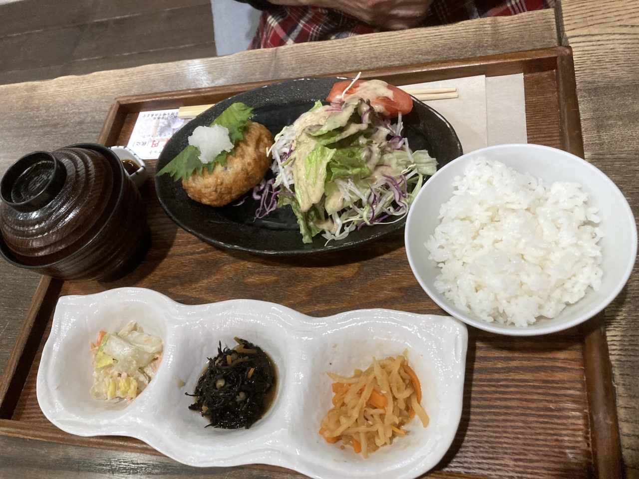 豆腐と根菜のハンバーグをいただきましたが、豆腐ですからより柔らかな感じのハンバーグに、大根おろしと大葉が添えてあります。