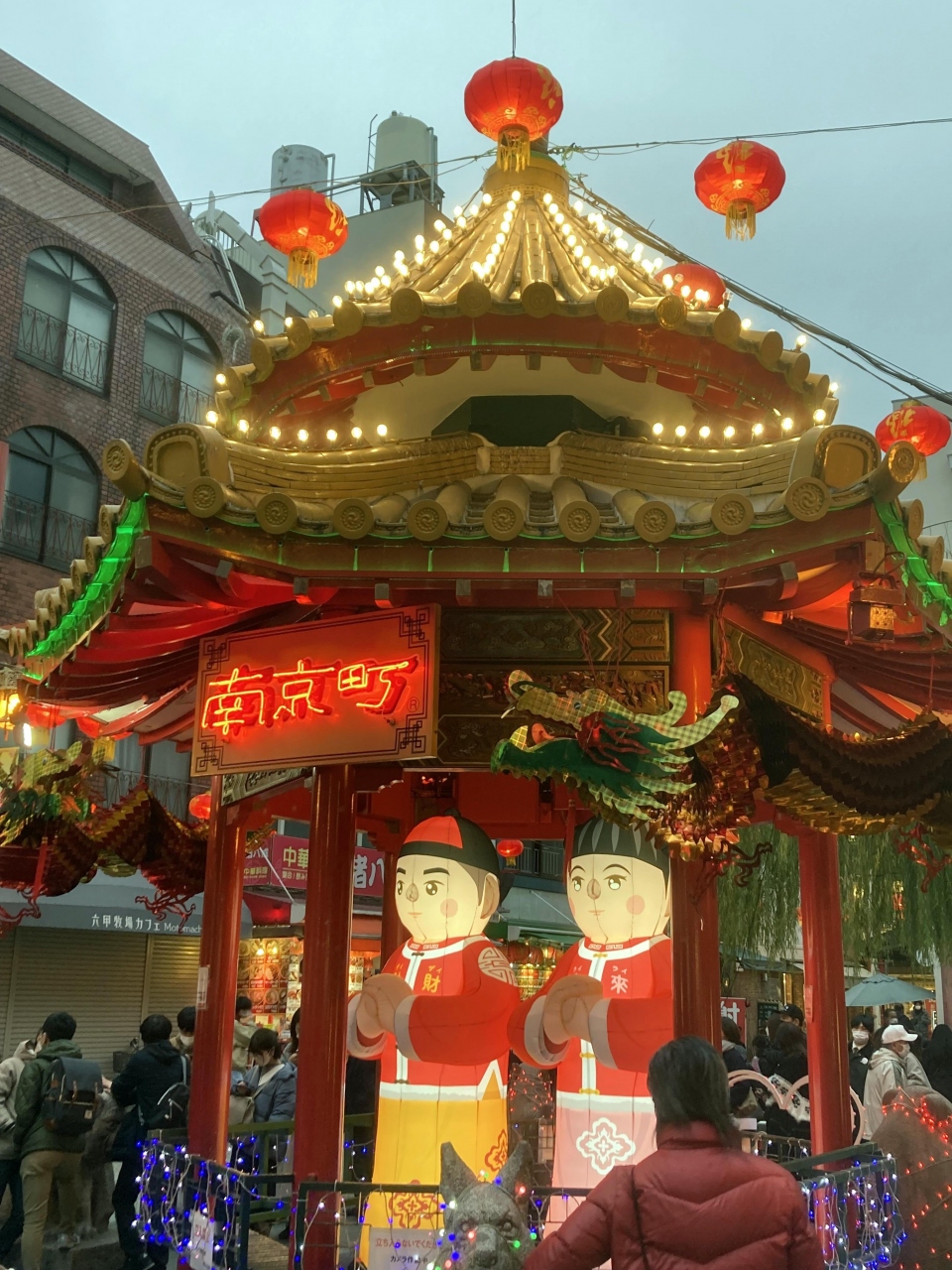 南京町広場にて開催されている「南京町ランターンフェア」は、中国提灯であるランターンで、この時期の南京町を、ランターンの暖かな光で包み、中国情緒豊かな景観を楽しめます。広場の中心に位置するあづまや内にも、小財神「財財・來來」のバルーン人形が展示されています。南京町広場の400個以上のランターンは、クリスマスのイルミネーションとは全く違った、幻想的で中国情緒を感じる景色が広がっていました。
