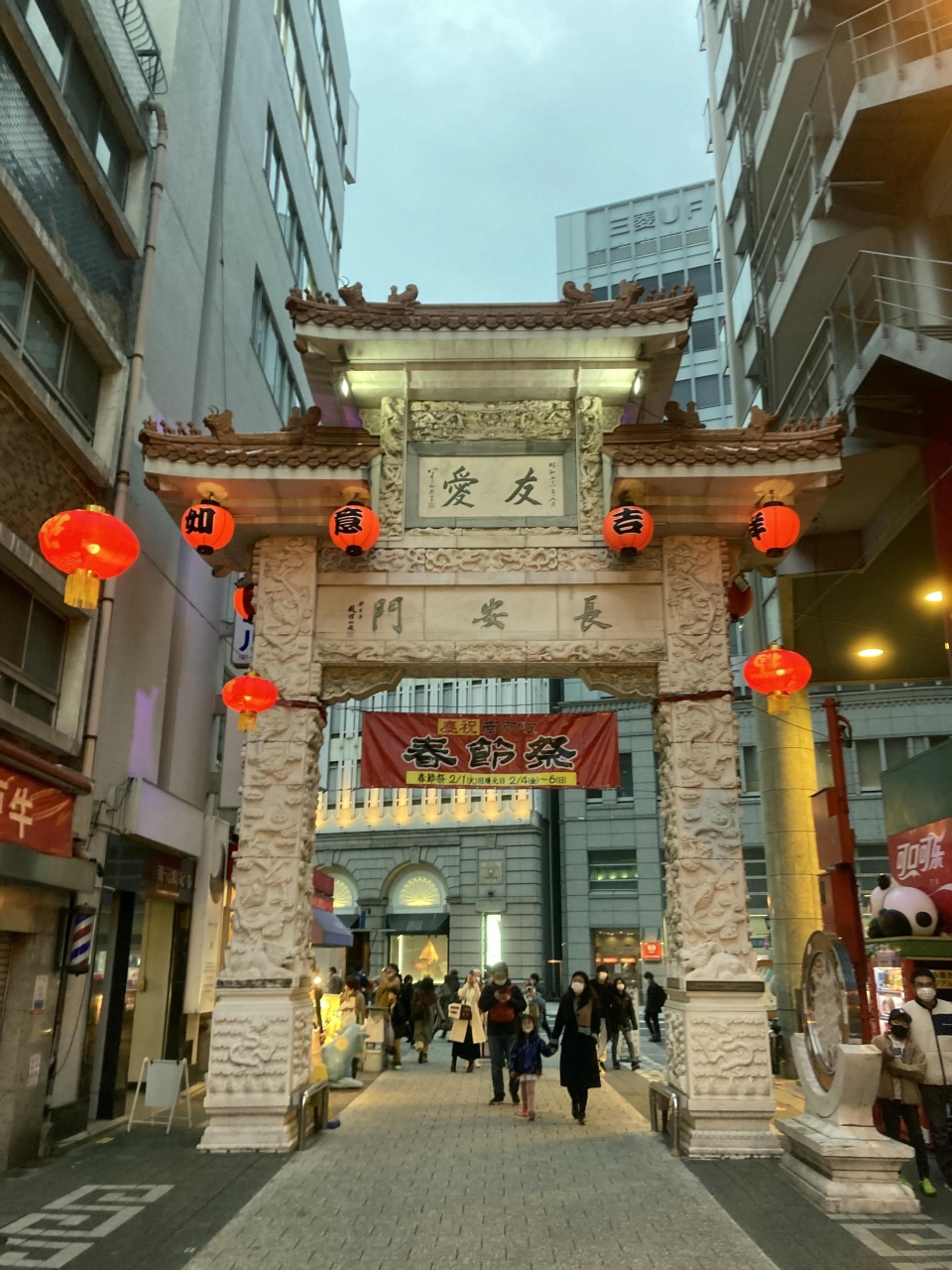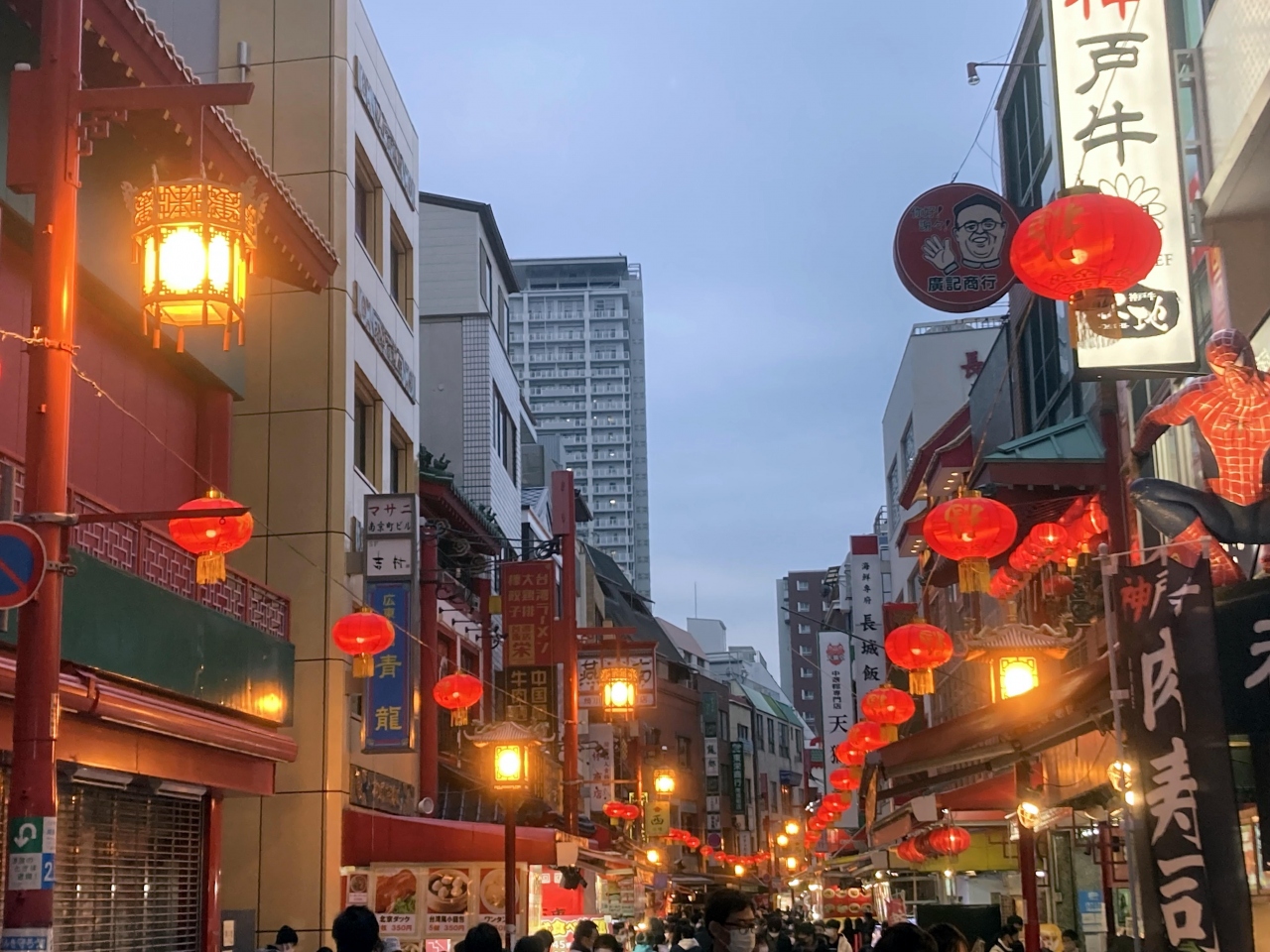 中国の提灯で飾られた南京町は、より一層異国情緒が高まります。