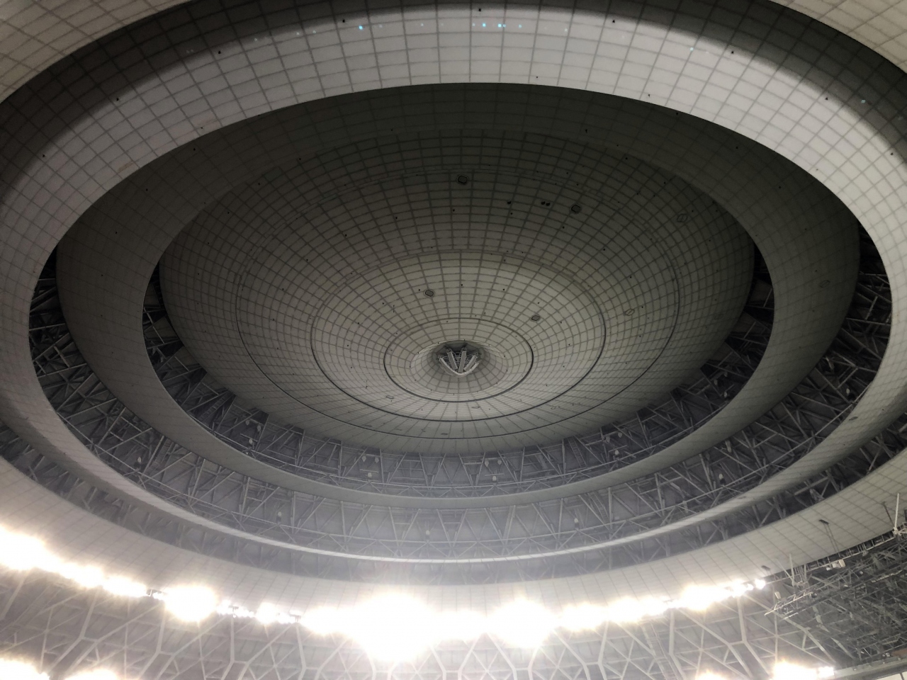 4枚目のリングに合わせて内側3枚のリングを下げれば、写真のように光を漏らさない状態となり、天井高は60mだそうです。