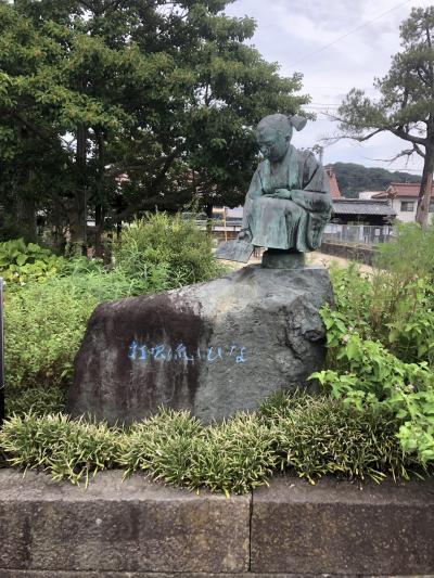 赤瓦の屋根が続く街並みに馴染んでいる公園ですが、流しびなの銅像があります。