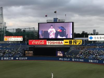 明治神宮野球場は、大正15年10月23日竣功という、歴史のある球場ですが、今まで甲子園とかドーム球場での観戦がメインでしたので、ある意味カルチャーショックを受けました。