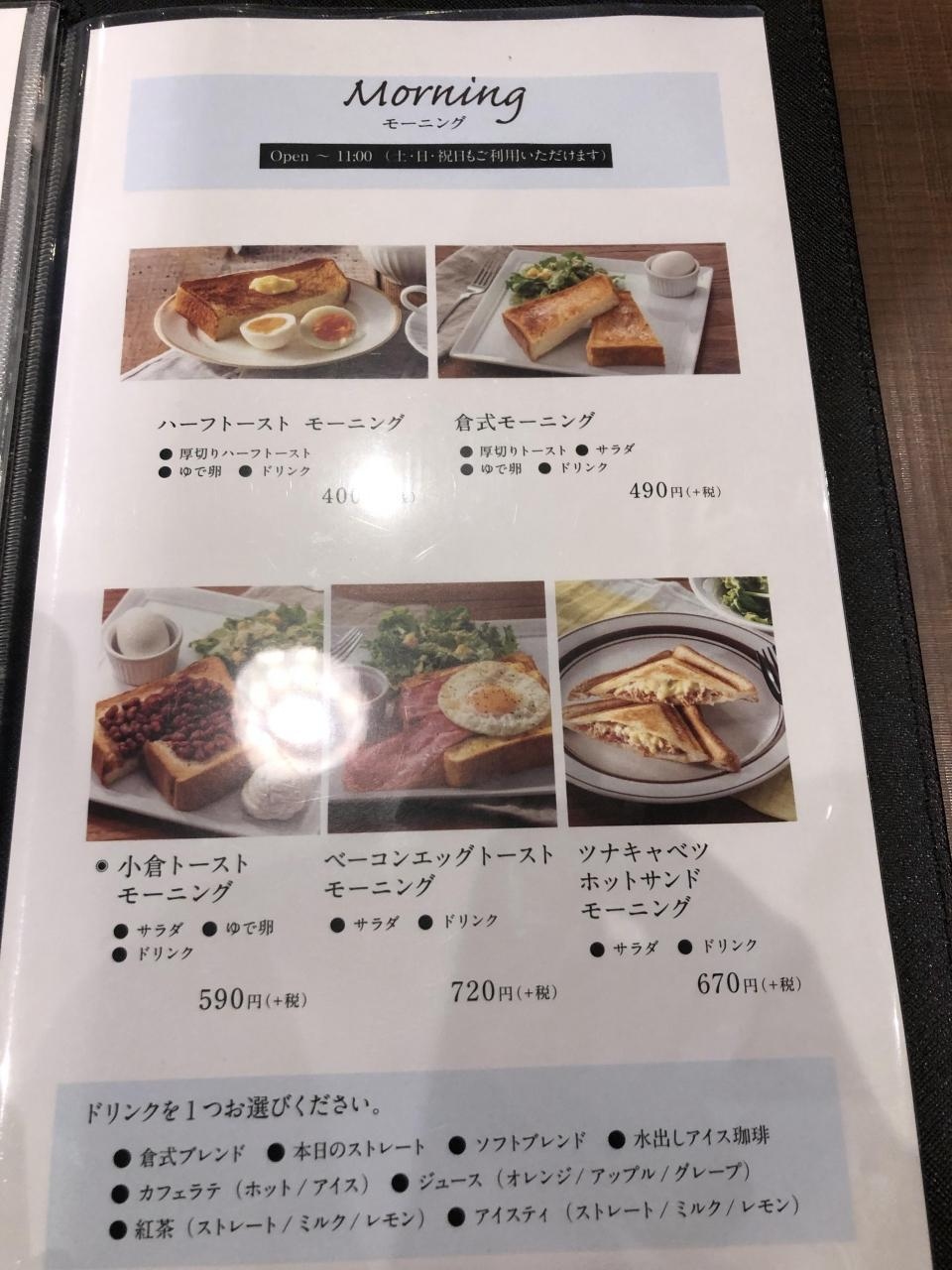 倉式珈琲のモーニングはコスパも高く、お勧めです。