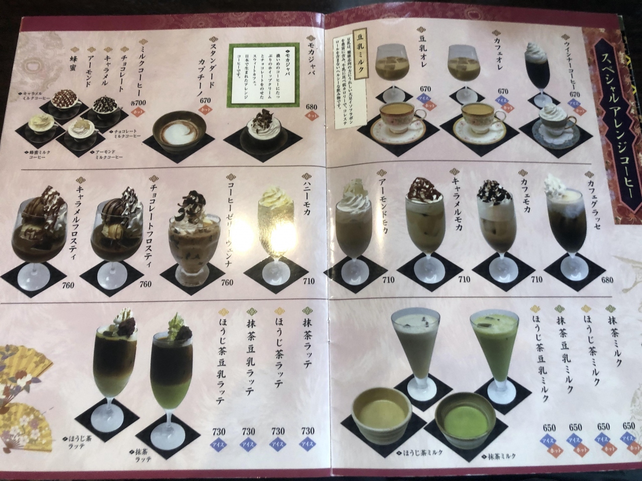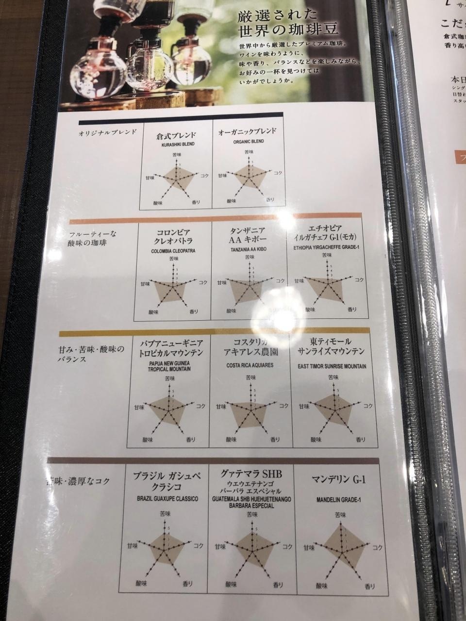 日本茶メニューもありますが珈琲メニューが驚くほどの種類があり、それぞれの特徴が記載されています。