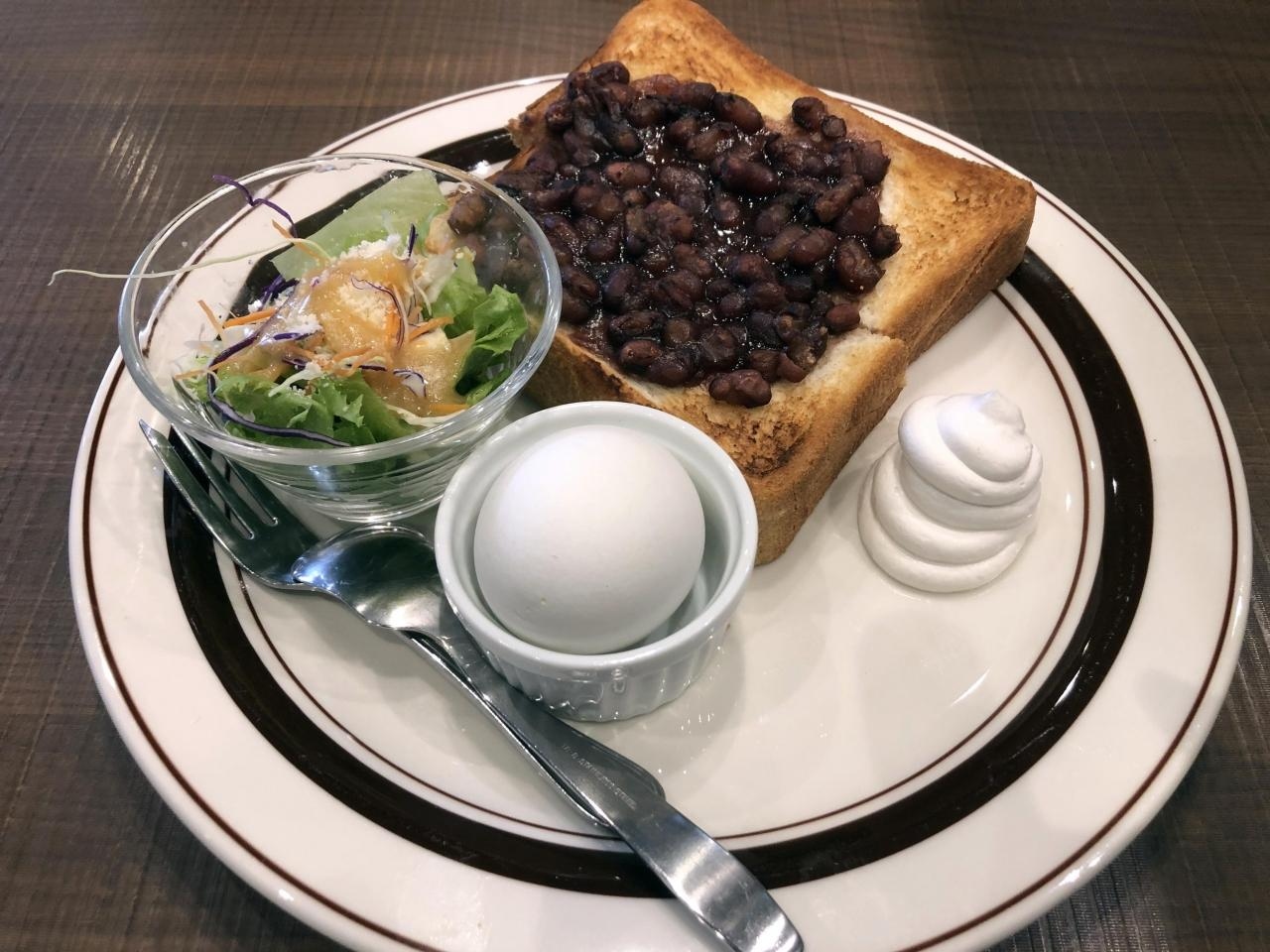 小倉トーストモーニングは、厚切りトーストに餡子にクリームという、最高の組み合わせに、サラダ、ゆで卵付きで、お得だと思います。- 旅行時期