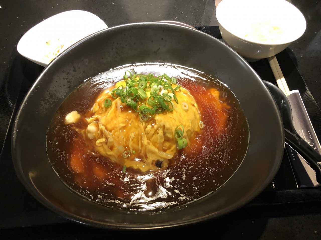 天津飯も色は濃いですが、味は濃くなく上品な味わいで、卵もフワフワ、美味しいです。