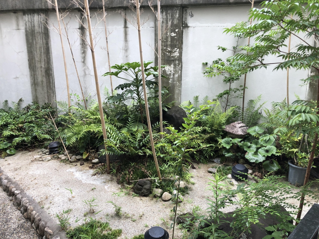 地下と言っても大きな中庭があり、店の前は明るく開放的な雰囲気です。EVの位置が分かり難いのが難点ですね。