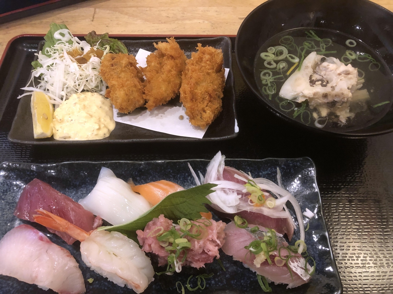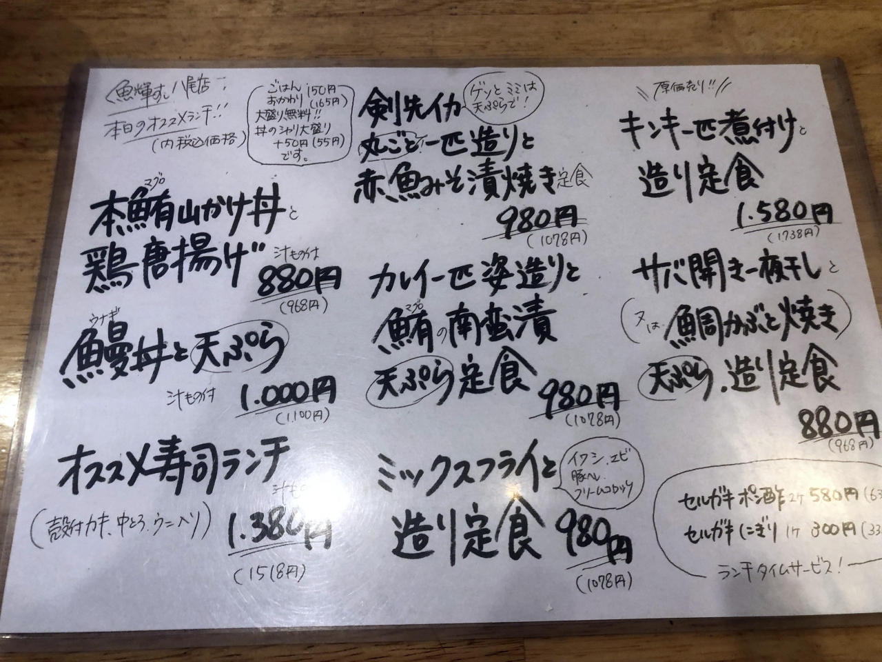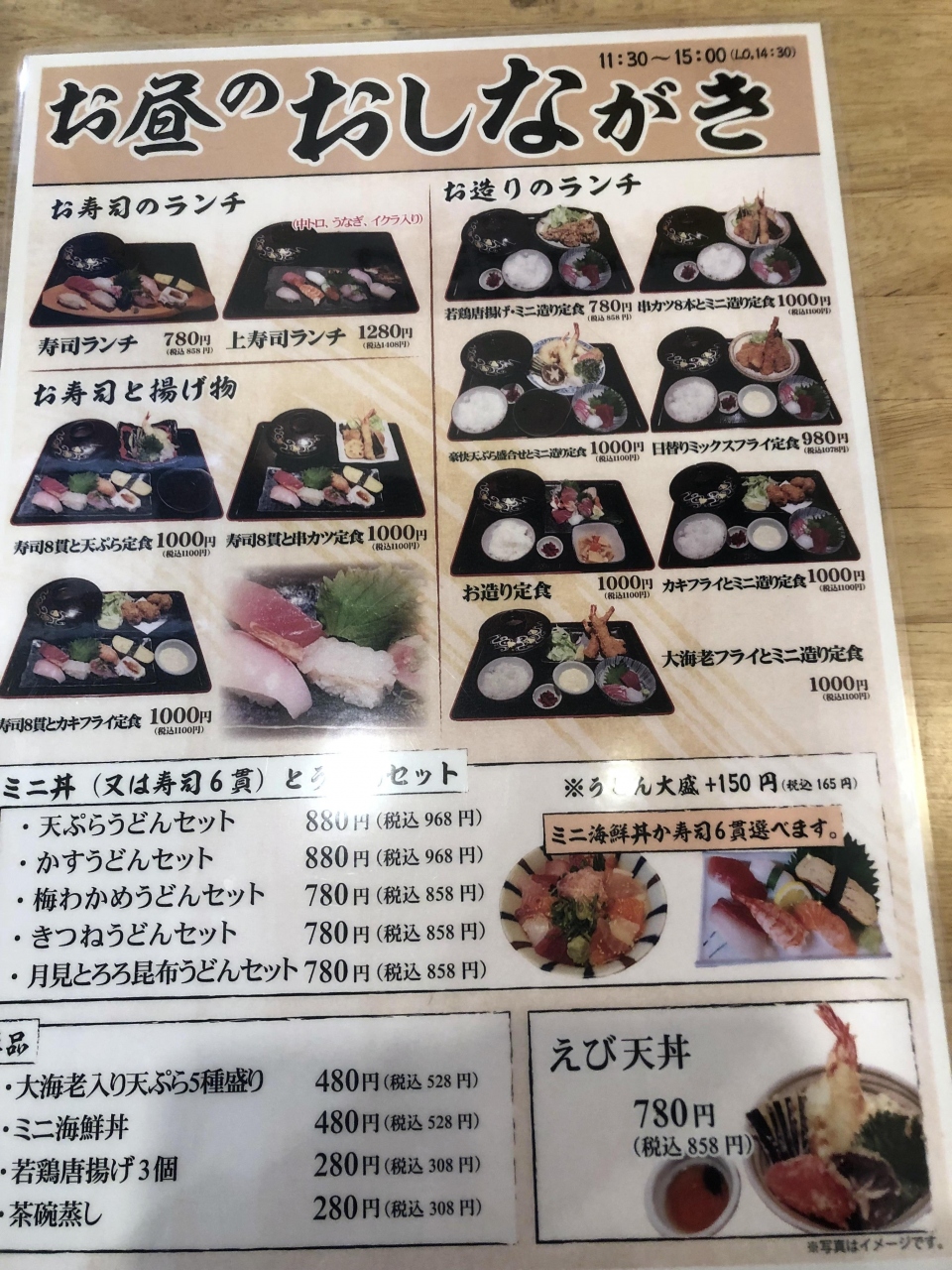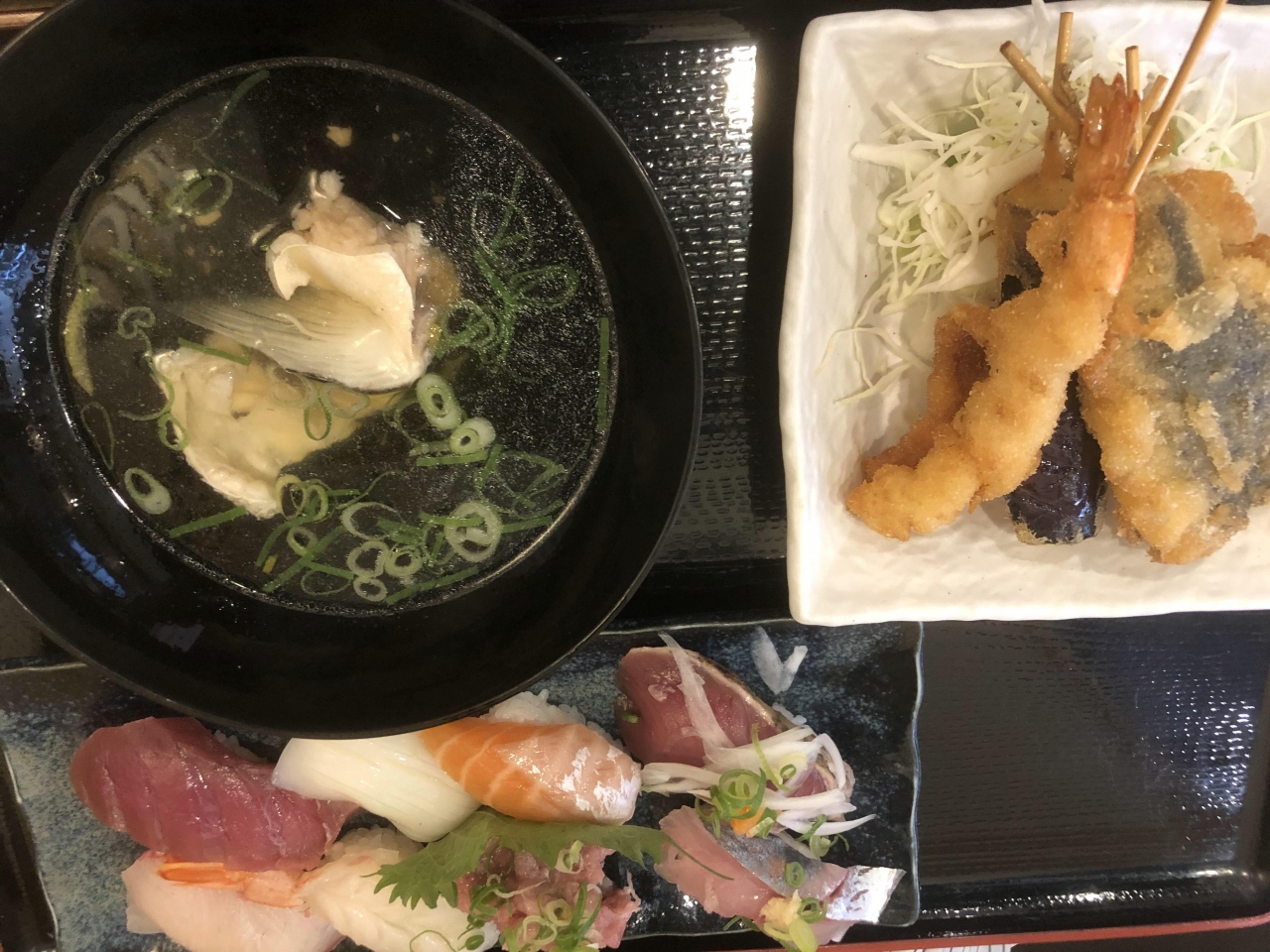 本当に目移りしてしまいますが、寿司に天ぷらや揚げ物がセットになったメニューが基本のようで、好きなものを選べるお店です。