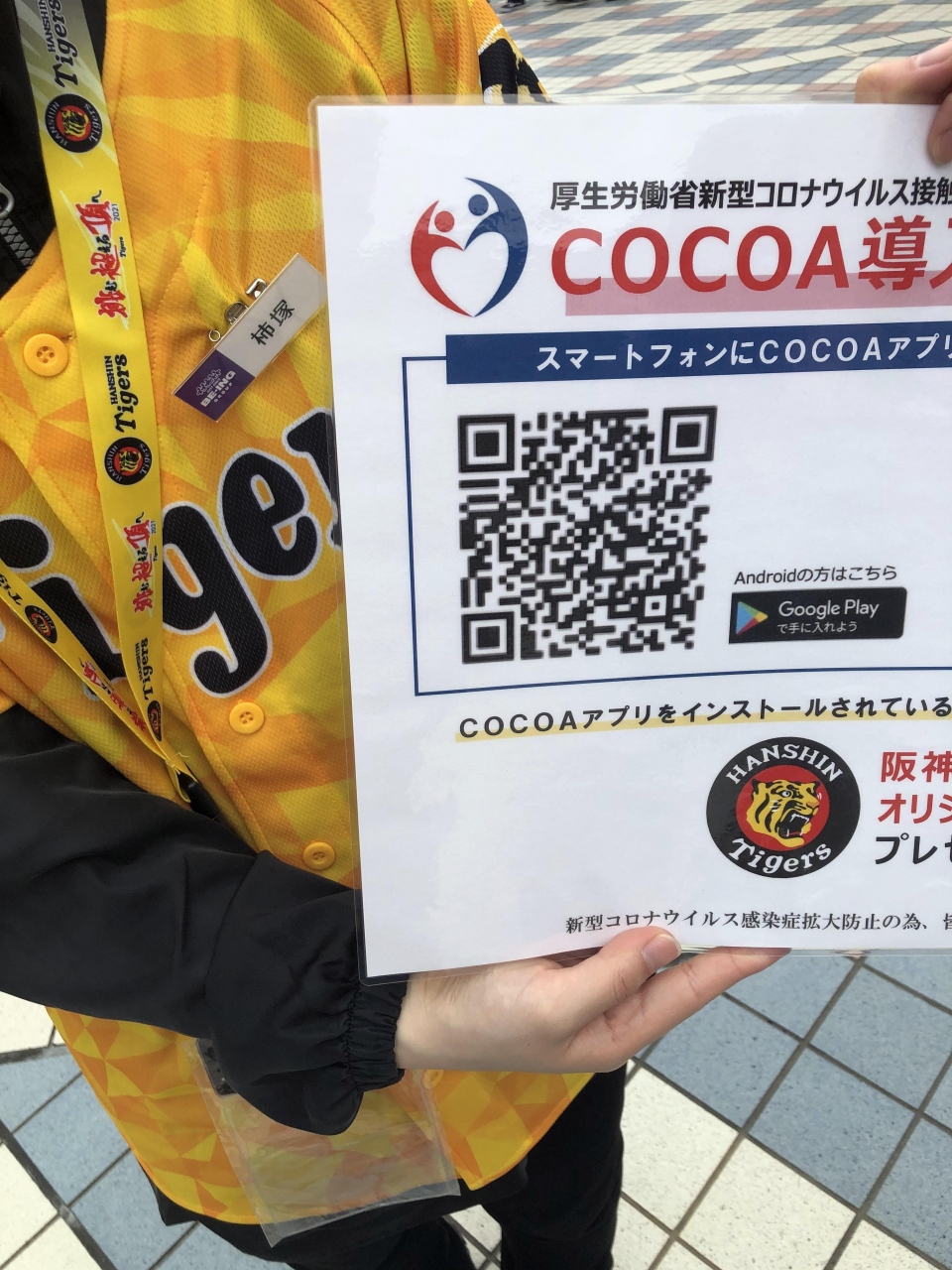 感染対策として、甲子園でもあったCOCOAの導入キャンペーンを行っていました。