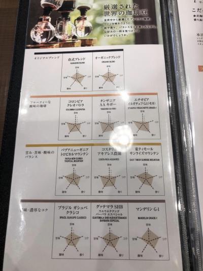 珈琲は日替わりで、色々な種類を頂くことができ、珈琲の特徴をデーター表で見ながら、自分好みの味を探すことができます。
