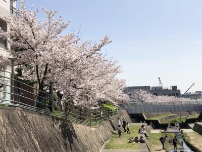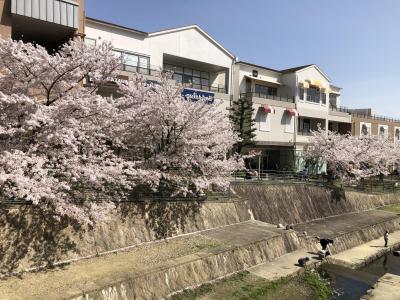 イオン箕面店を「イオンスタイル箕面」で食品関係に特化、大型フードコートも新設されていました。敷地内に千里川が縦断していて、川沿いの桜が満開です。- 旅行時期