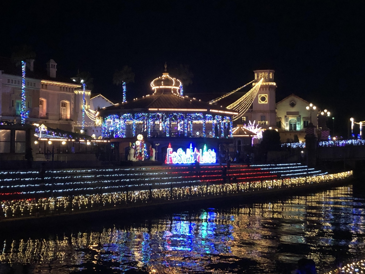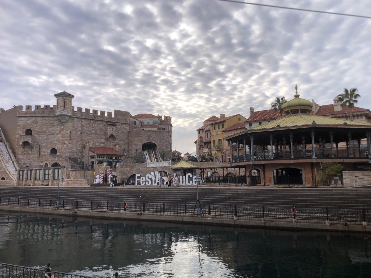 光と水が作り出すロマンティックな空間となって、アトラクションも彩られ、プロジェクションマッピングもあり、クリスマスシーズンならではの世界を醸し出しています。- 旅行時期