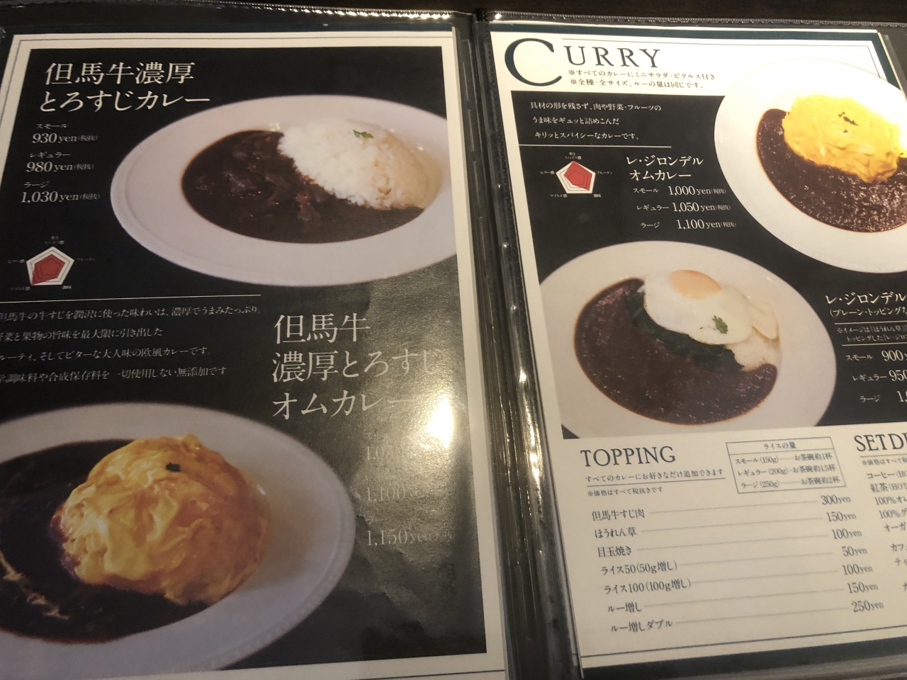 但馬牛スジカレーが、一推しのようで、野菜の旨味を凝縮した濃厚なルーと、とろとろに仕上げた但馬牛すじの欧風カレーでした。