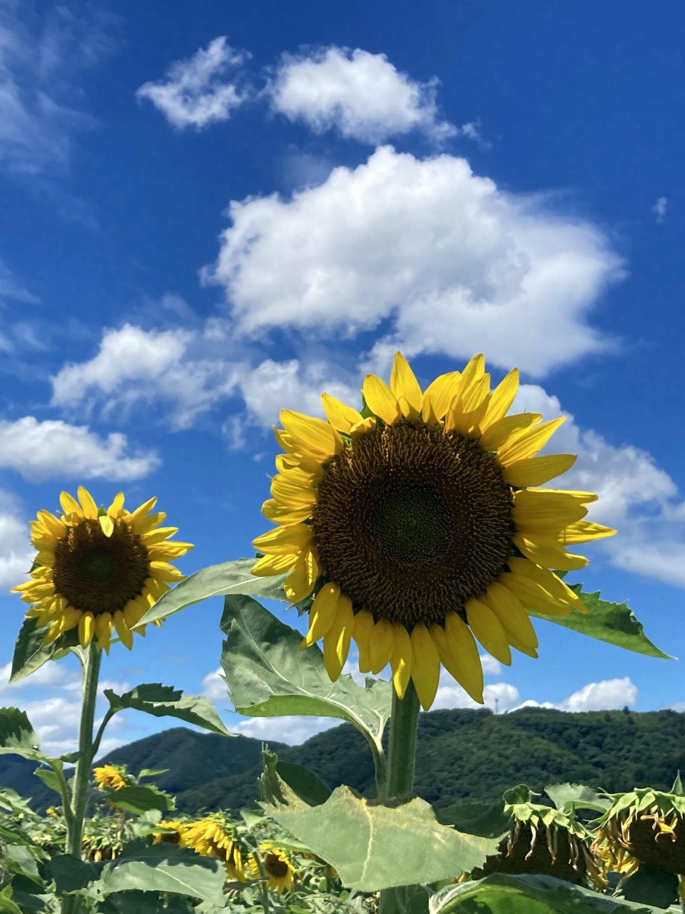 大きな駐車場もあり、広大な敷地に咲き誇る「これぞヒマワリ畑」という景観を楽しめる場所です。