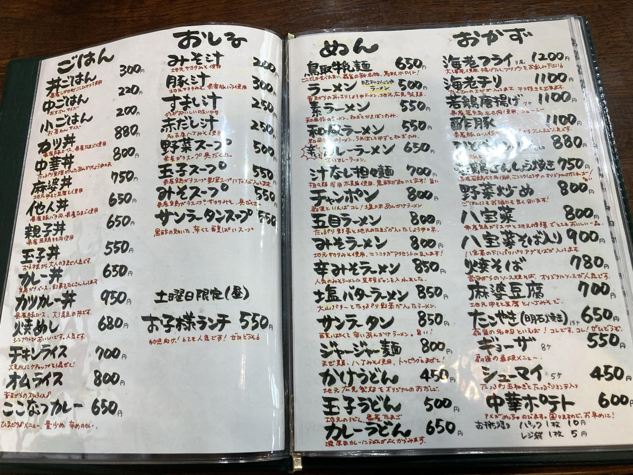 中華食堂と言われていますが、10種の定食やカレー、親子丼、オムライスにうどんまで、何でもある町の食堂ですね。