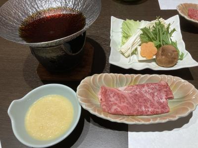 こちらの名物は、鳥取和牛のとろたますき焼きで、肉質日本一と言われる鳥取和牛を、料理長秘伝の割下ですき焼きにしたものを、地元の卵にとろろを加えた、特製ダレで頂きます。