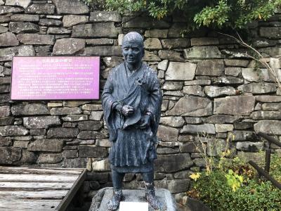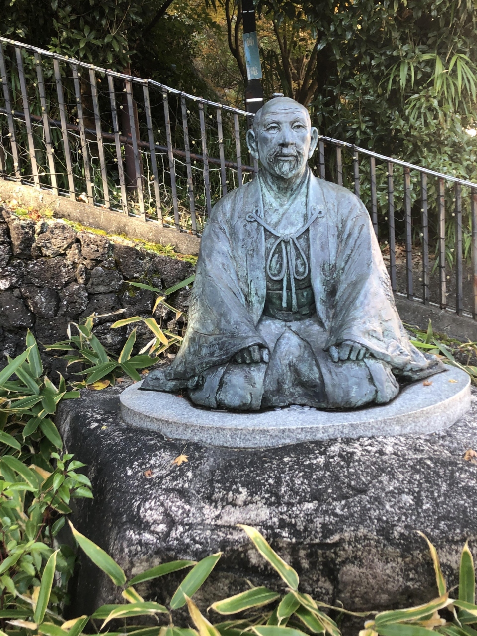 小ぶりのこの像は、少し離れた「湯けむり広場」に建てられた秀吉像と向かい合って互いを見ていると言われています。