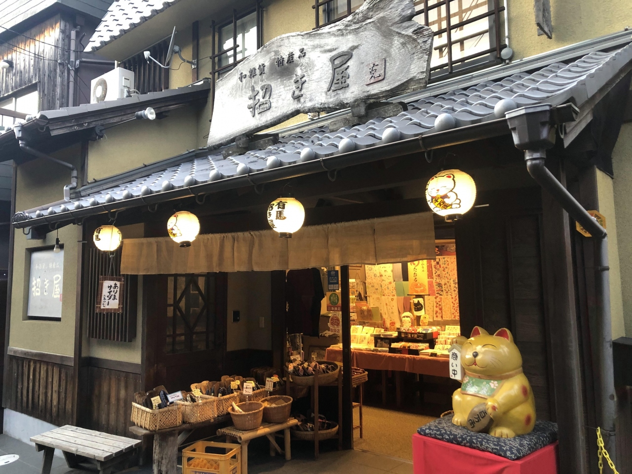 有馬温泉らしい風情のある石畳のエリアで、お土産から飲食等、色々な種類のお店があります。