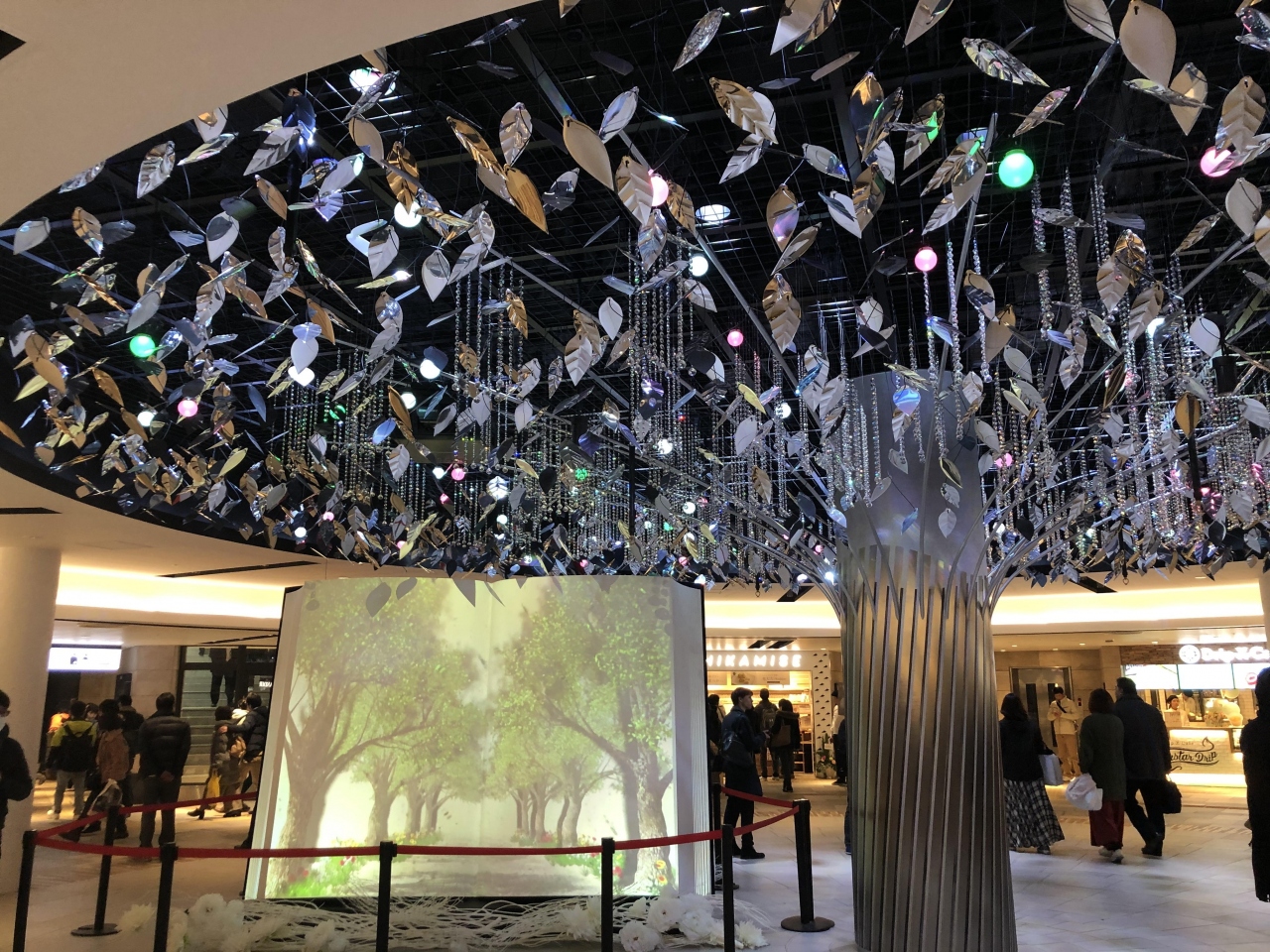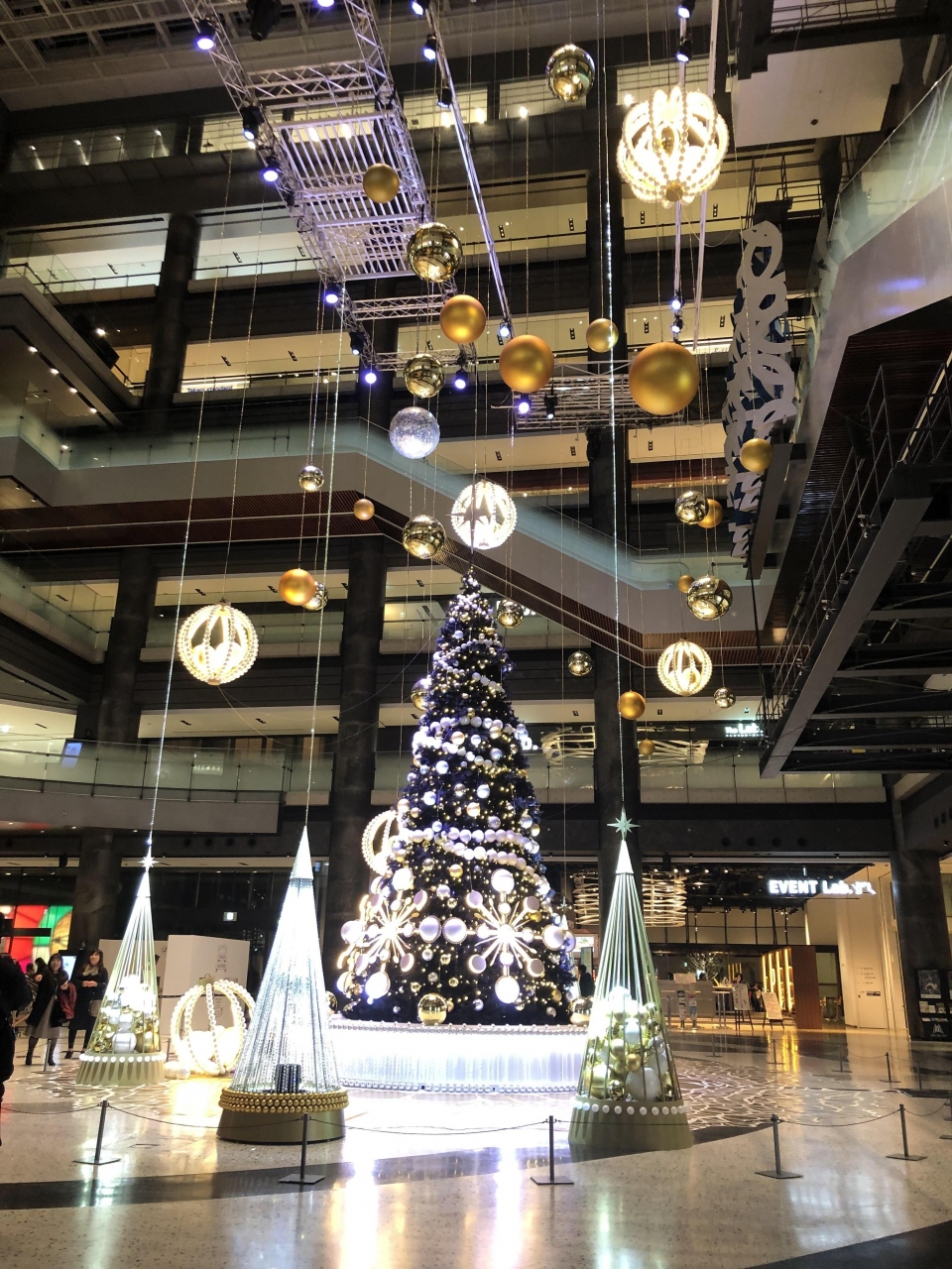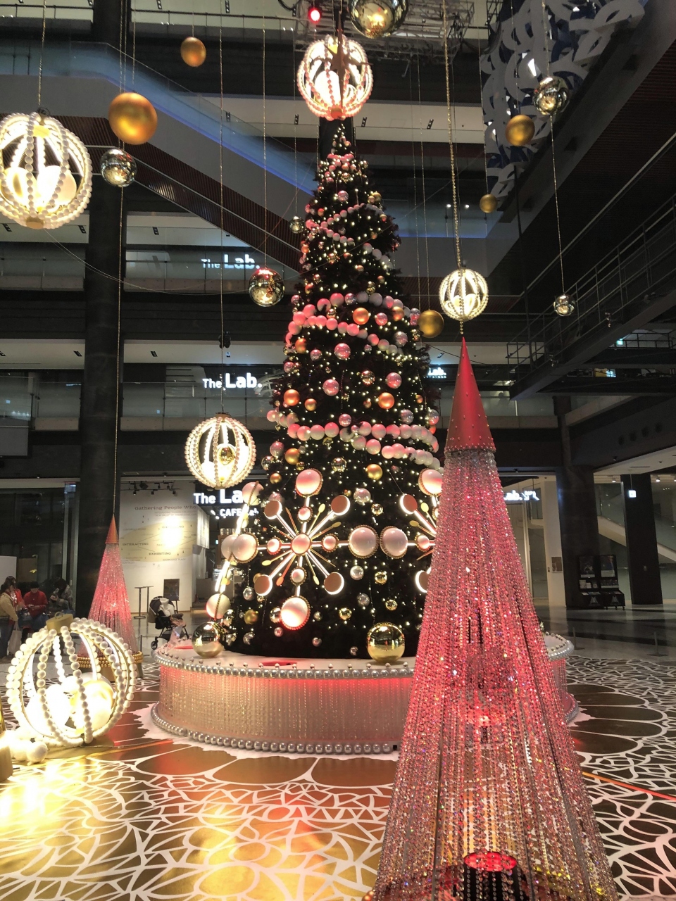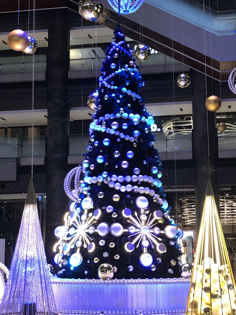 北館1階ナレッジプラザでは、特に指向を凝らしたクリスマスツリーと、音と光のショーが行われていました。高さ約8mの、光り輝くクリスマスツリーは本当に輝いていました。- 旅行時期
