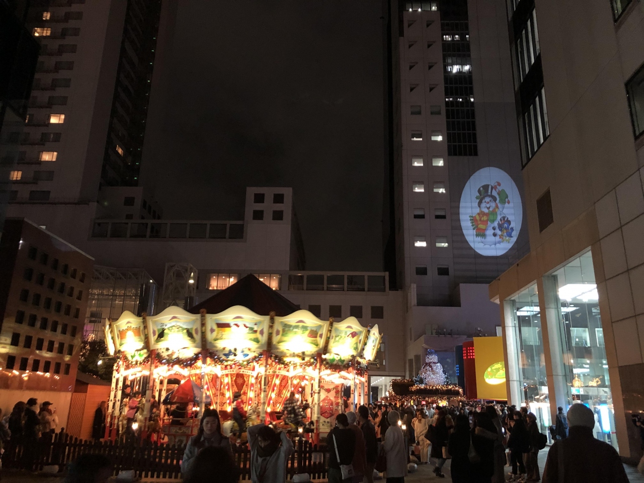 梅田スカイビル1F広場で、会場全体を煌びやかに彩るクリスマスツリーを始め、メリーゴーランド、飲食店の屋台等で、冬の街が楽しいカーニバル会場となっています。