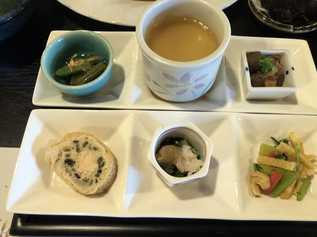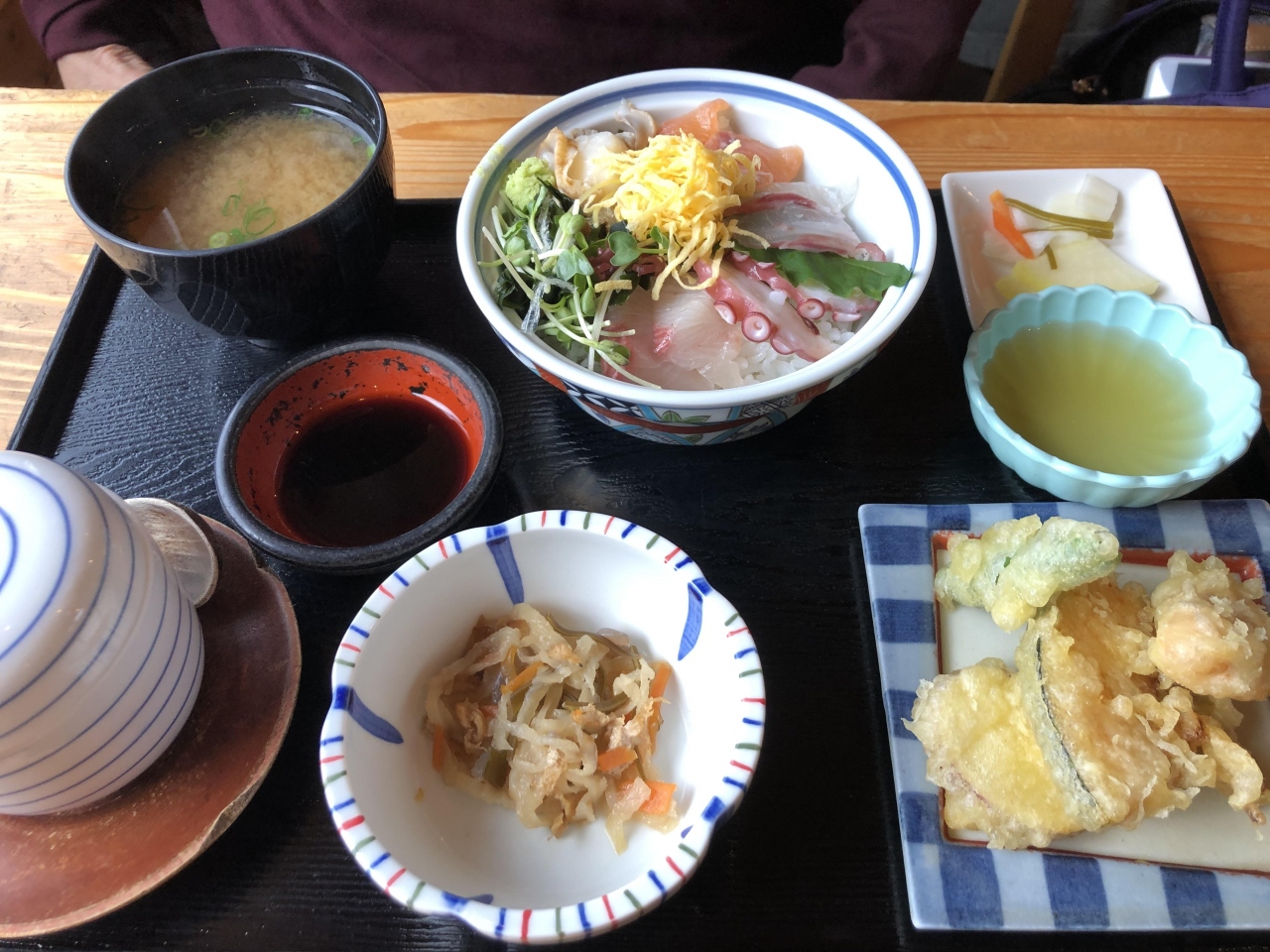 ランチメニューはお得感があり、羽釜炊白御飯セット、想月サラダ、季節のご飯の友、具だくさんの汁物に、肉、魚、天ぷら料理からチョイス出来て1,800円です。- 旅行時期