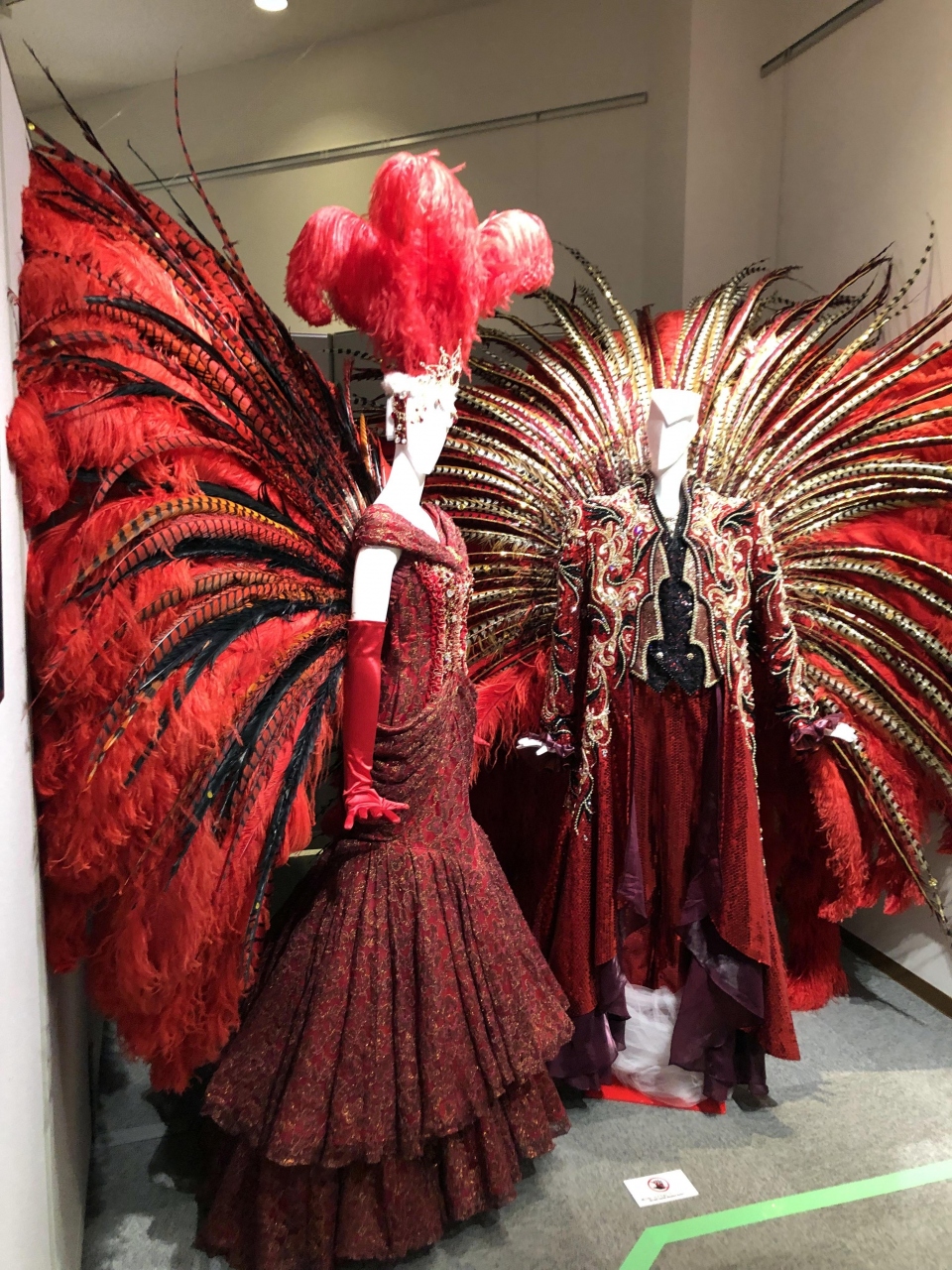 卒業生やスタッフの紹介や、ファンの方々からの寄贈品や台湾公演で使用された衣装などが展示されています。写真や小物類、トップスターの偉大さや宝塚の魅力が伝わってきます。